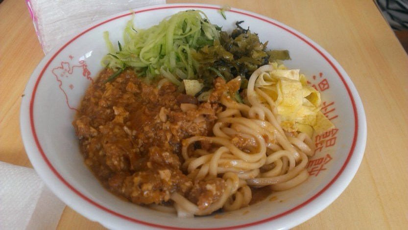 At Danshui for lunch, we found this tiny store front that was opened for lunch before 11am on a Sunday. After we made our way up the narrow stairs, we sat down to a nice bowl of wonton soup and a bowl of Taiwanese style Bolognese noodles. Simply, yum is the word. It’s just right.