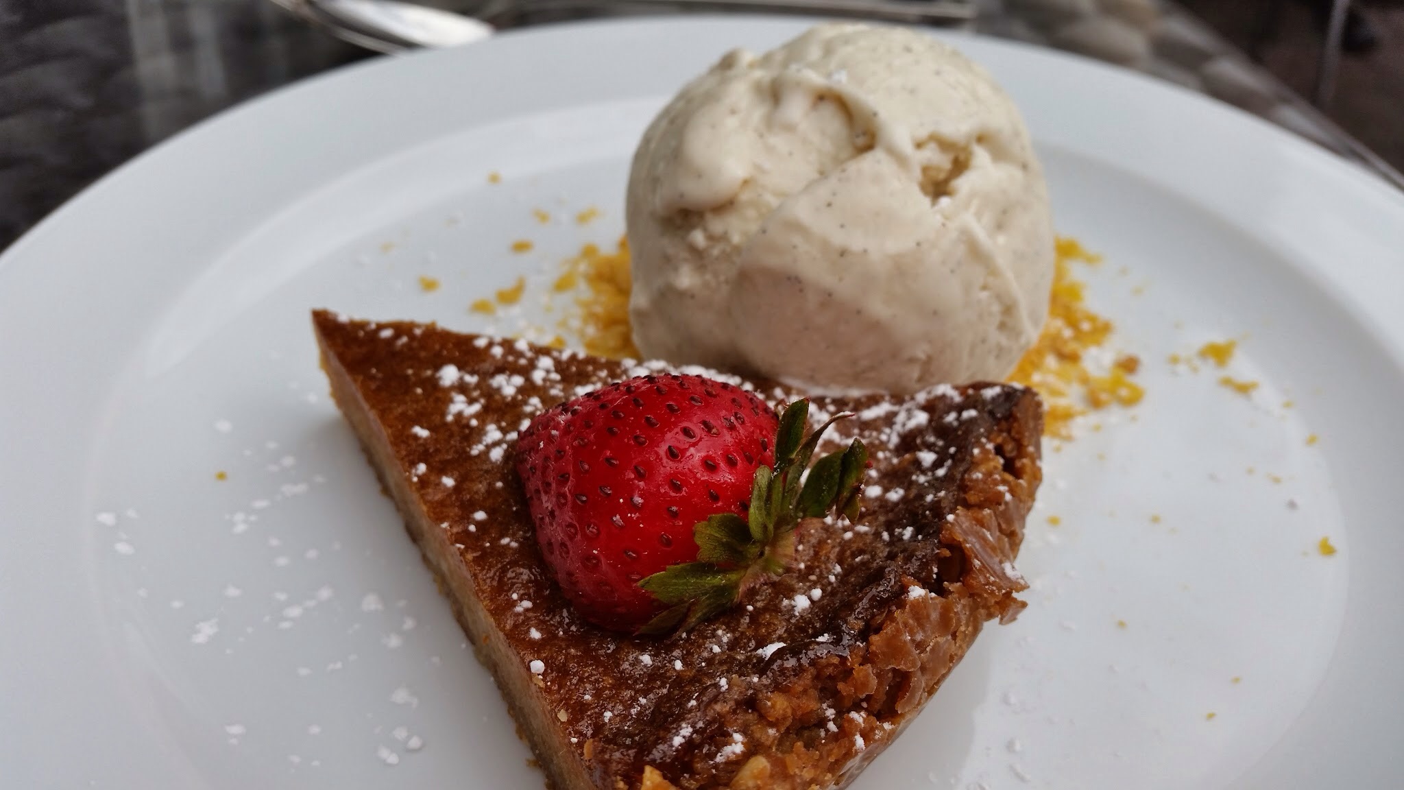 This is my love: flourless chocolate cake with chocolate ice cream. It was ok. My utility went down very fast once I started eating. Too much American-type chocolate sweetness. Basically, it was too sweet and made with the American brand chocolate. I prefer the European dark chocolate. That’s ok. I can always love again.