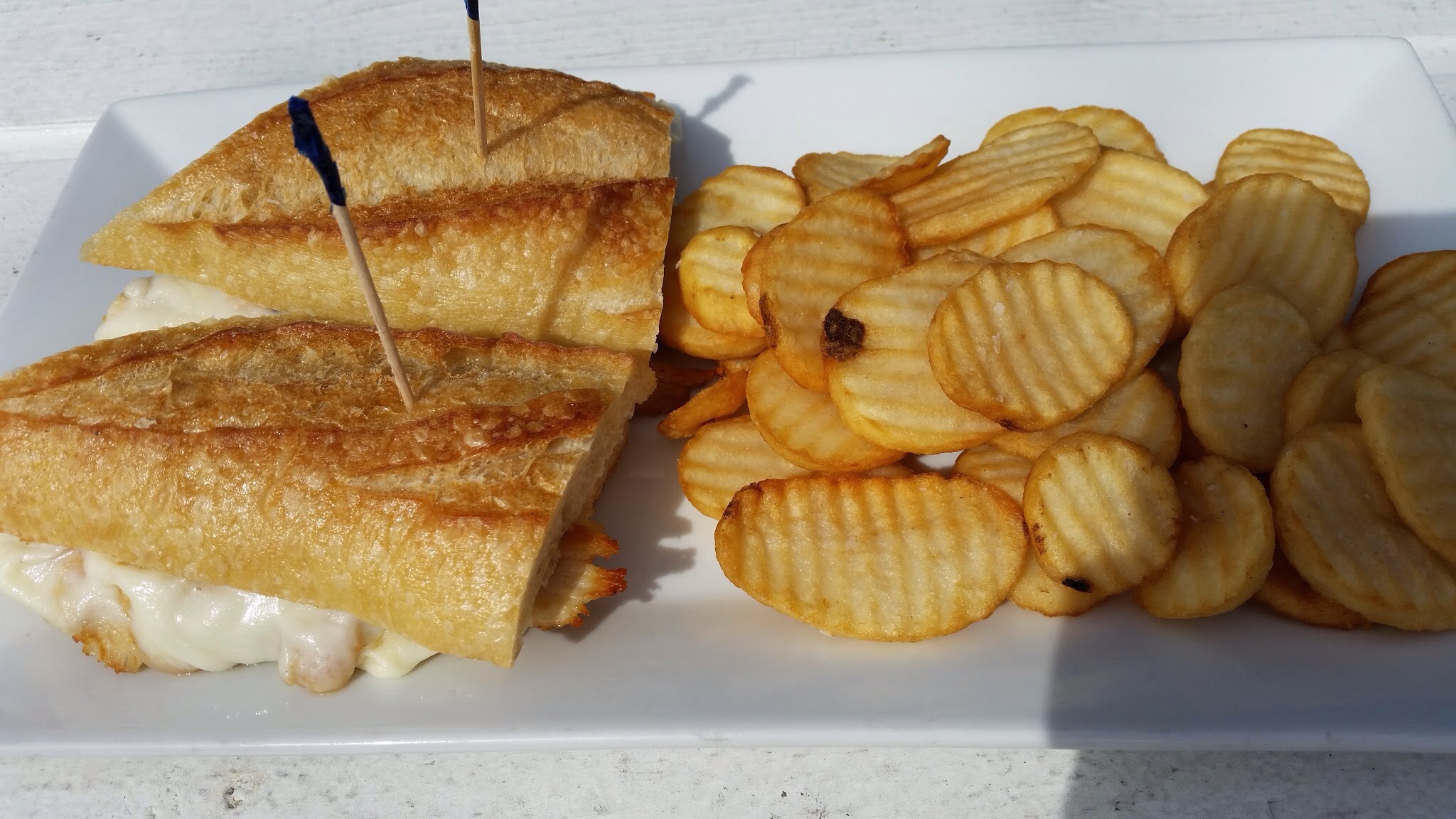 My friend and I sat on the deck out back: the sun was shining, the weather was warm, and the music was groovy. The music must have been from the 70s. We were the only two patrons there when we first arrived. Sitting there under the warm Fall sun, seeing the top of the sail boats, it was nice enough to cock your head, squint your eyes, smile and enjoy the moment. All we needed was great food.