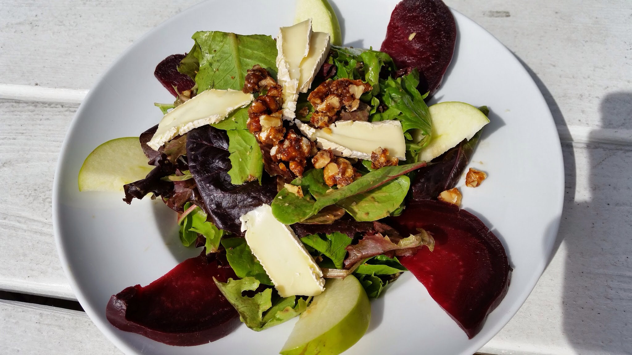 After the soup, I am glad that I stuck with the Beet and Apple Salad. Hard to mess that up. At least the beets and the green leaves contrast well.