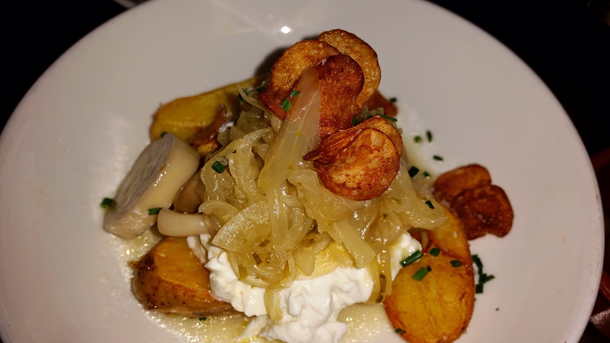 Buffalo’s Milk Burrata with Amontillado Onion Broth and Crispy Potatoes: The Burrata was more runny than what I like but the broth was good.