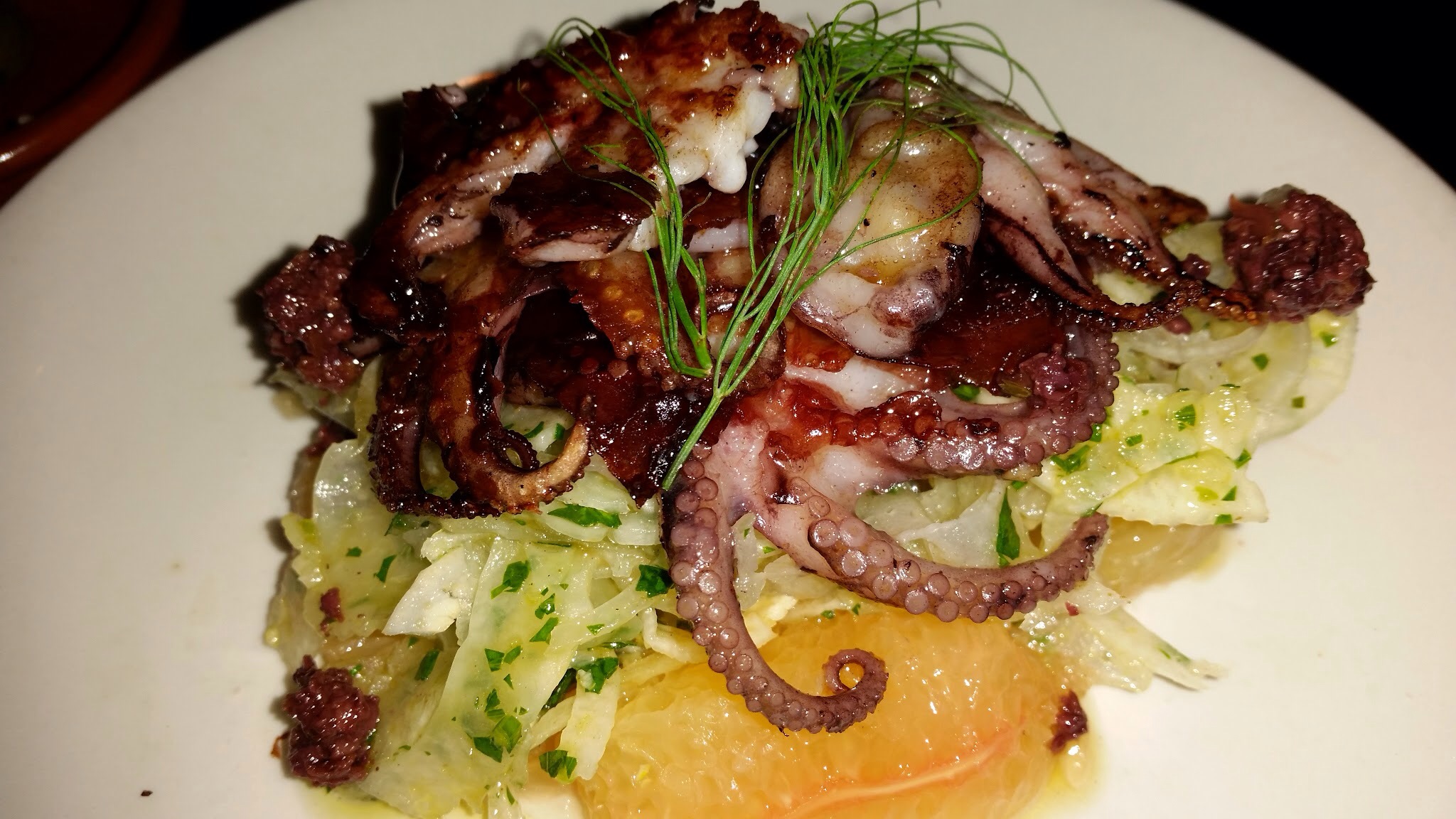 Pulpo with Fennel and Grapefruit: This was ok. I like Octopus so it’s hard for Octopus to be wrong for me. Should be grilled instead of fried. Should probably use a slightly larger cut.