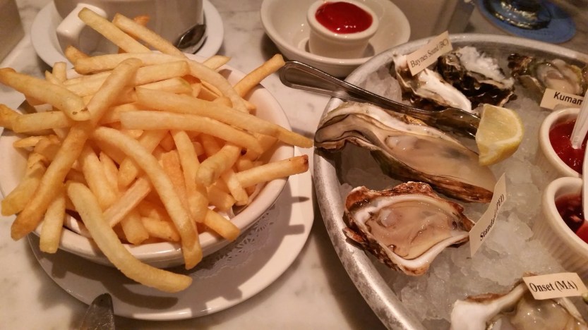 It was an excellent meal, sitting with a great friend eating oysters with French fries at the bar. Thank you E for teaching me to eat them together! Thank you for a fun-filled night. 🙂