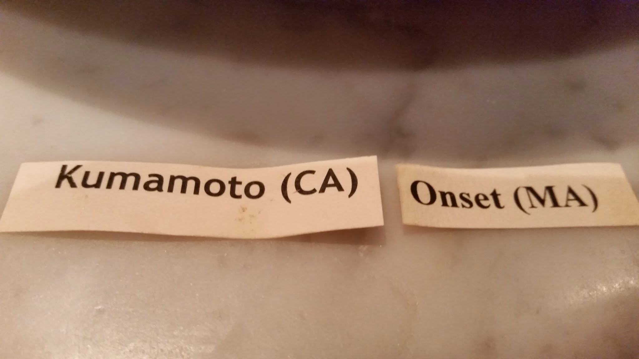 Onset from MA was clean, fresh, and smooth. Kumamoto from CA was creamy like dessert in seafood form. These are our favorites.