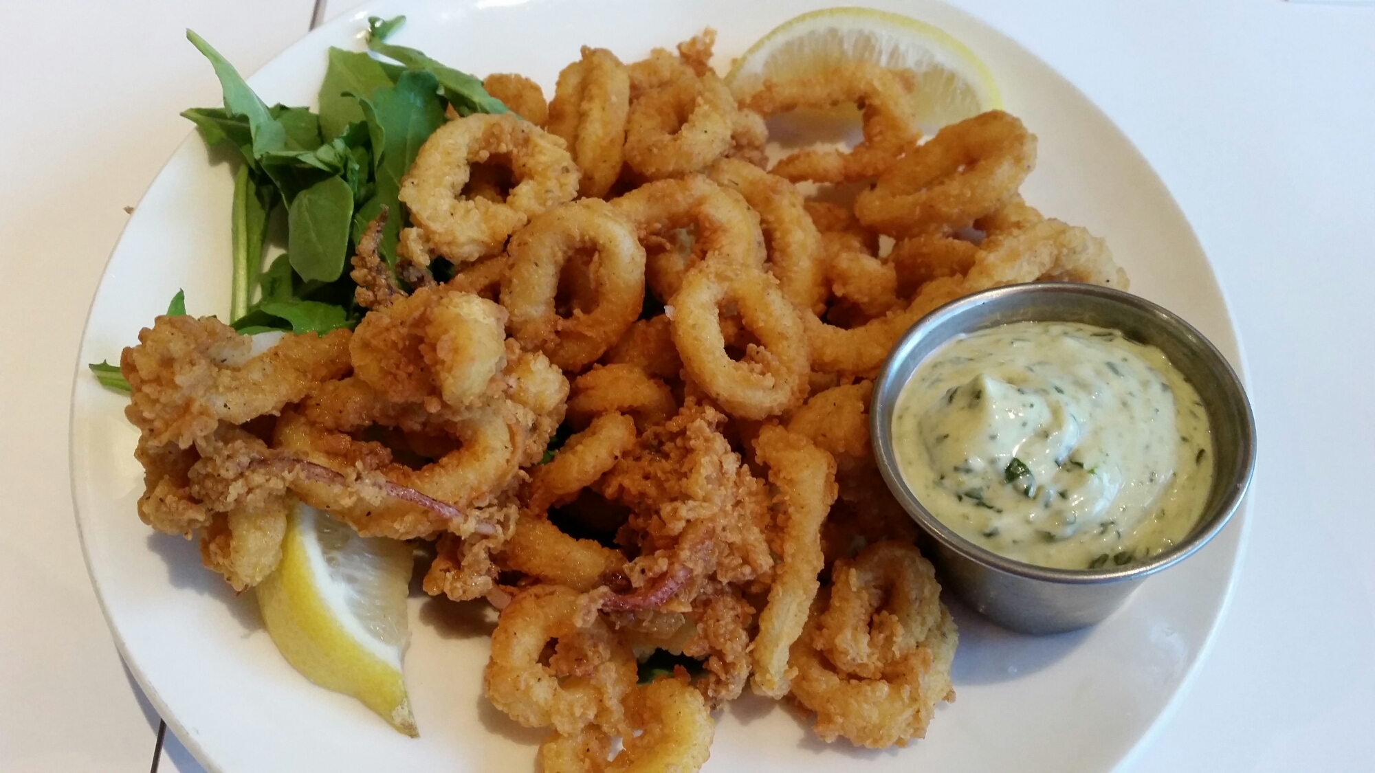 Ce sont les calamars frites, 6 oz. Puisque je n’ai pas mangé de déjeuner au musée, j’avais très faim. Mes yeux étaient plus grands que mon estomac. Les calamars n’étaient pas aussi fraîches ni bien frites, contrairement à ceux que j’ai mangé à le Elm Street Oyster House in Greenwich, CT.