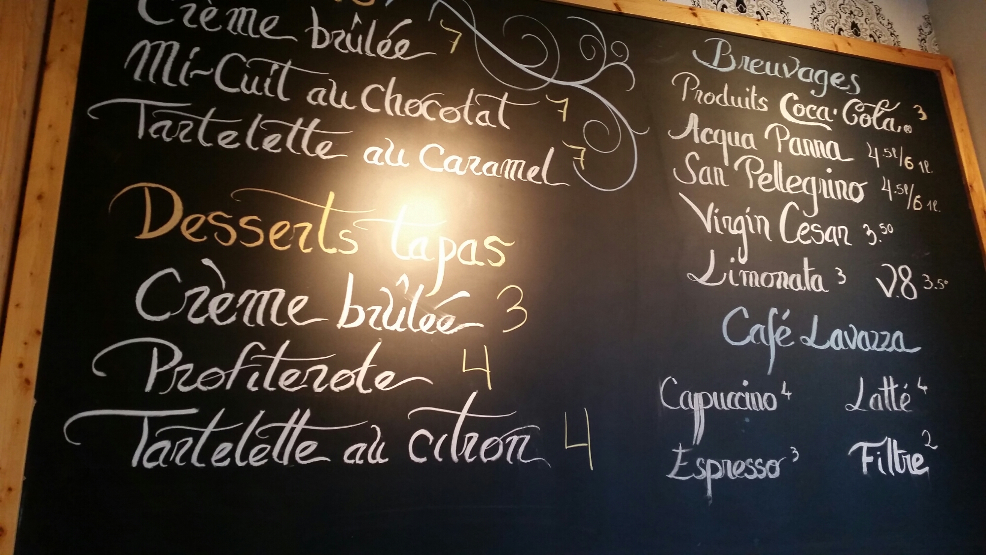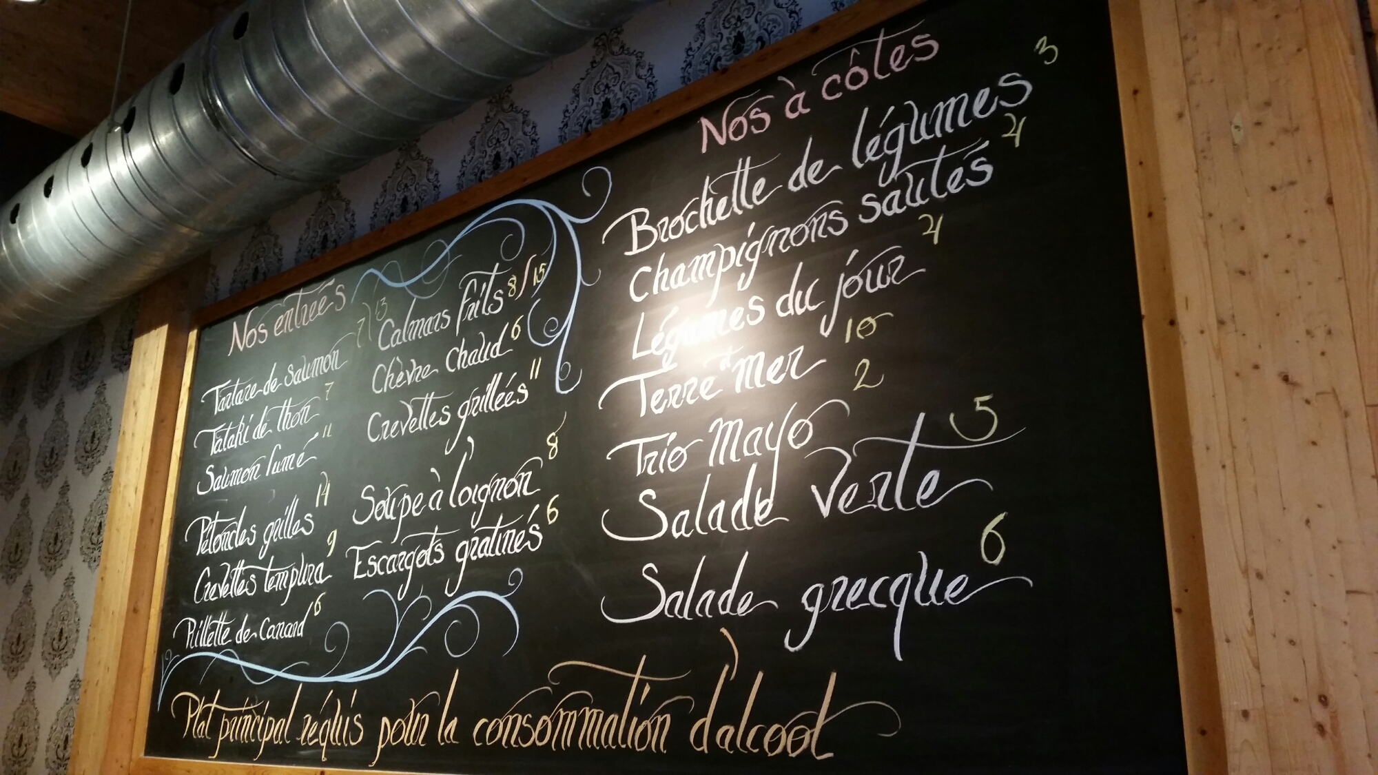 The French education system requires young children, as young as five years old, to learn to write script. My child suffered this fate. I was never a fan since I believe we will mostly type in the future. It seems like an antiquated requirement. But this is when I appreciate the long form writing. I think this menu is artistically presented.