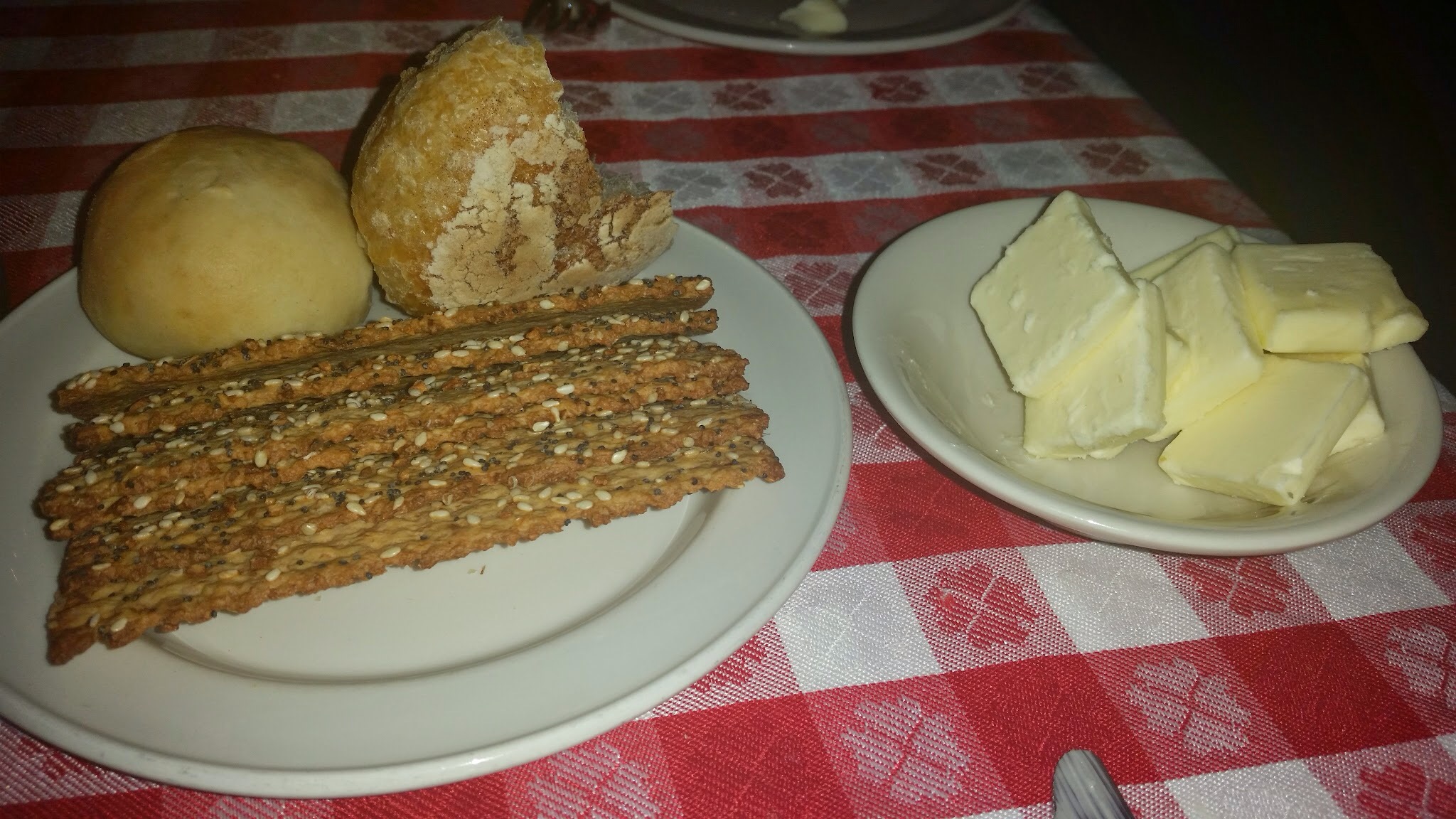 Simple bread sticks, bread and chunks of butter. The butter was so cold that it was impossible to spread it.