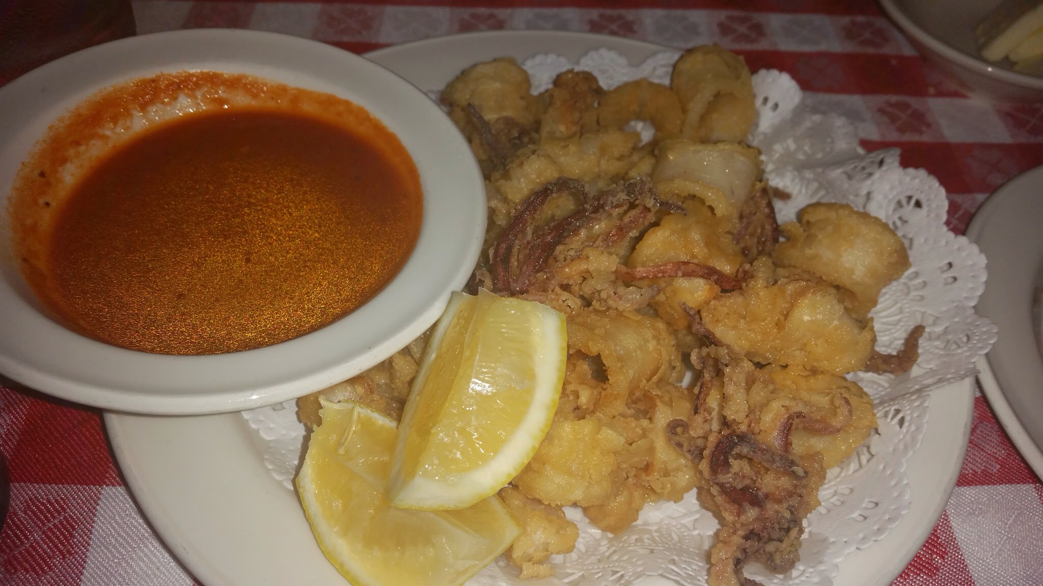 Fried Calamari. Had much better at Elm Street Oyster House in Greenwich, CT. The calamari here was not as fresh and had too much grease.