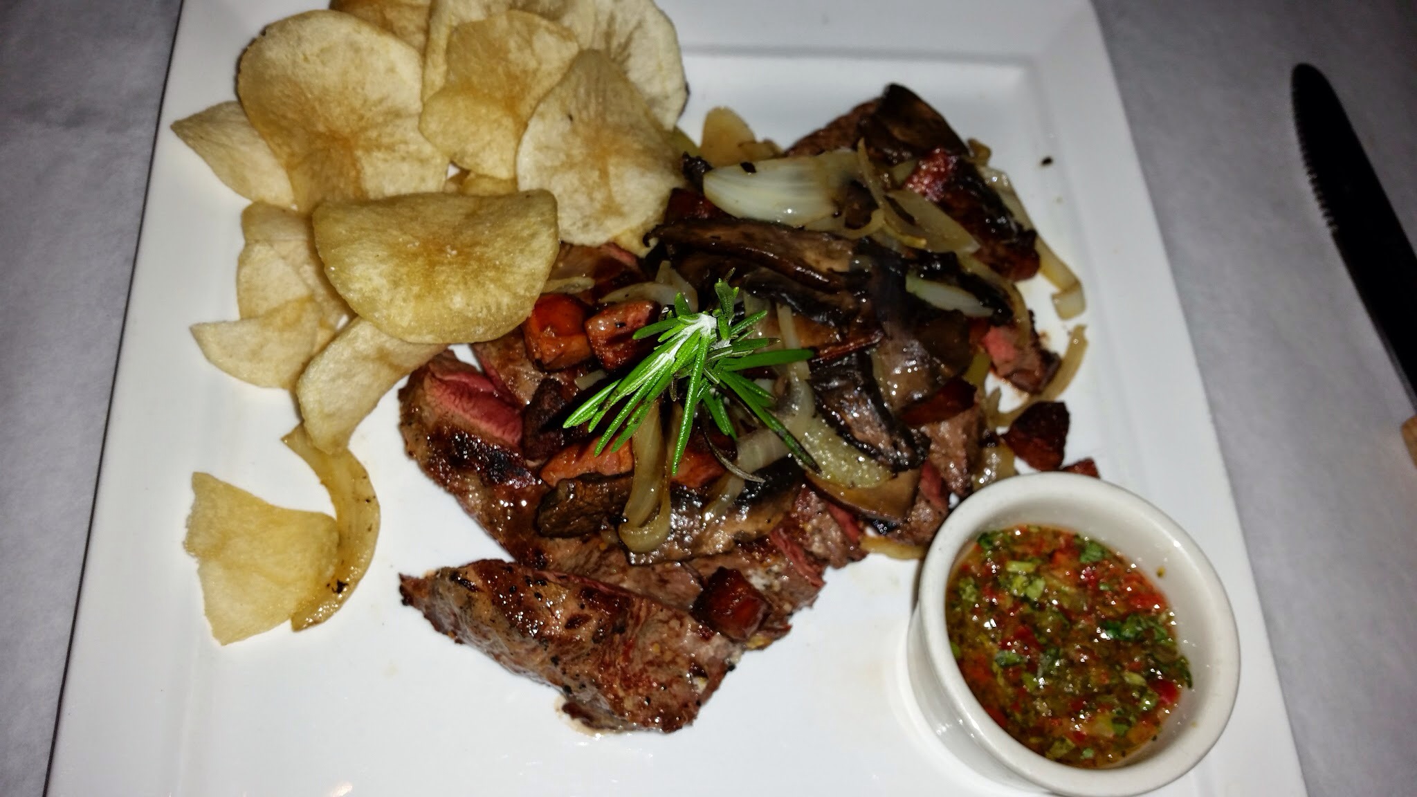 That’s prime advice… “When in steakhouse….”… great chimichurri sauce…. 😀