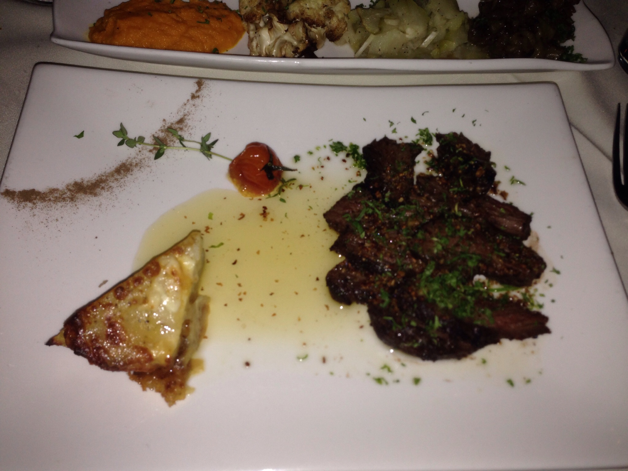 Onglet Poêlée, à la Luchonaise: butter only seared hanger steak, roasted garlic, parsley. They had me at “butter only!”