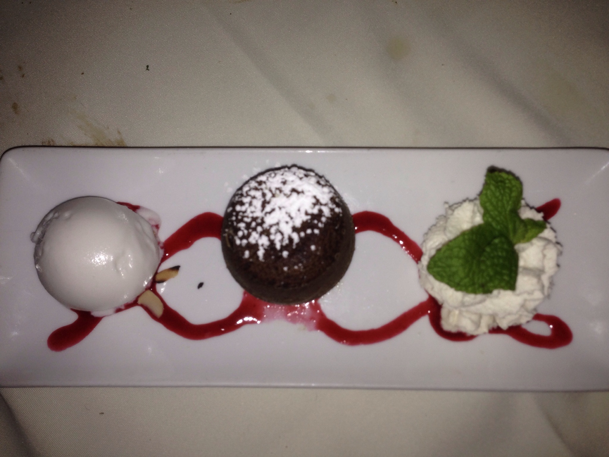 Fondant au Chocolat Noir: dark lava chocolate cake and home-made coconut sherbet. This was very delicious. Enjoyed every spoon of it. The dark lava chocolate did the French proud and made me smile. 🙂 Add to the chocolate glory, the coconut sherbet brought the uniqueness and completed the profile. I was very happy with this dessert. Quite a close for our meal.