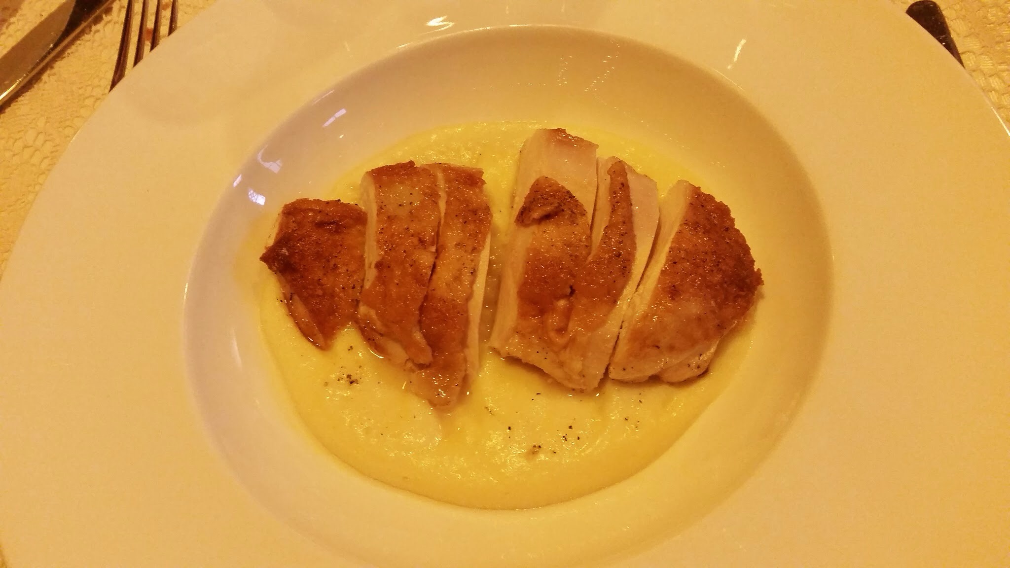 GRILLED FILLET OF BRONZINO, GRENOBLOISE STYLE: Fennel purée, jardinière of vegetables. The Bronzino was excellent, very fresh and tender. With a touch of lemon, it was perfect.