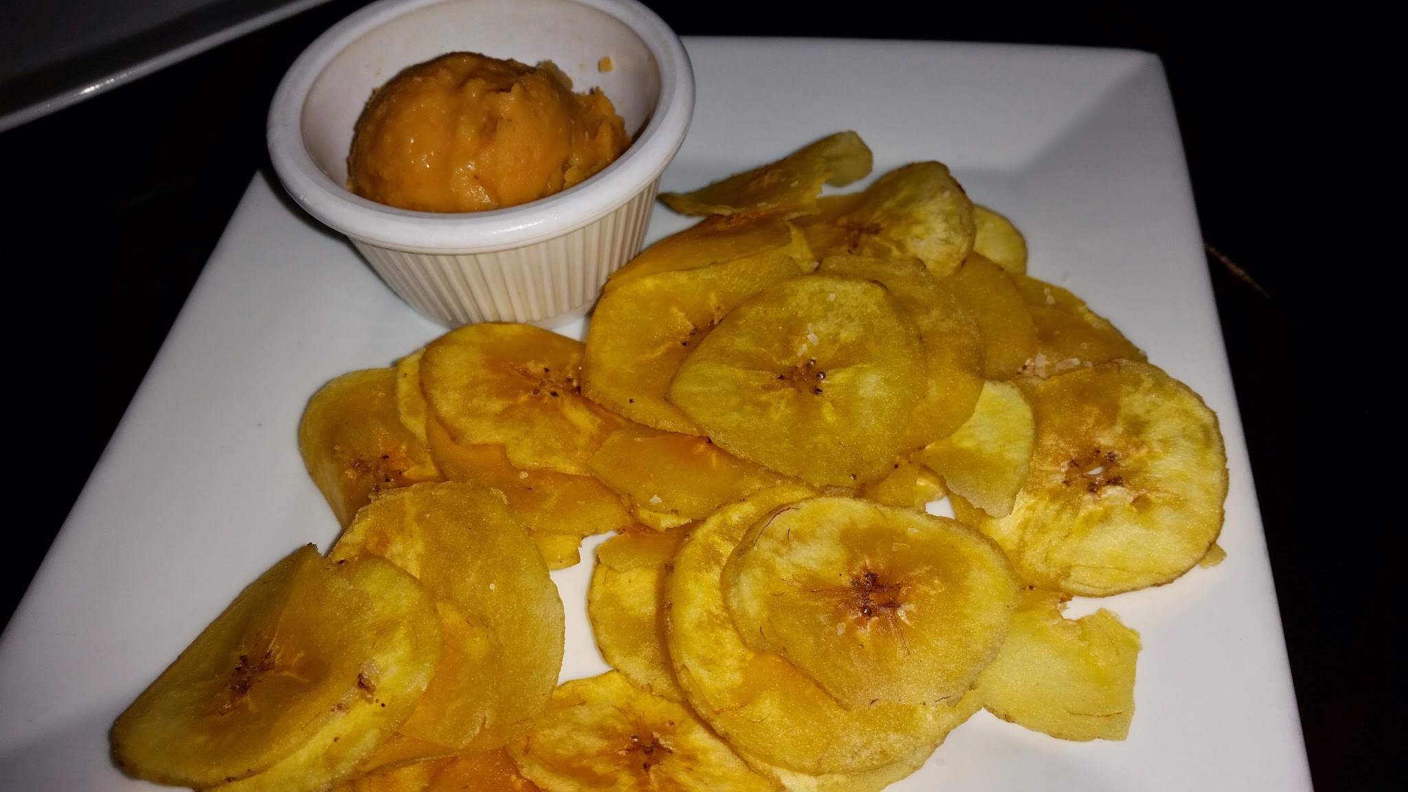 The plantain chips were paired with hummus. We asked and was told that it was indeed white bean hummus with garlic. It was very good. I could not stop dipping the chips into the hummus.