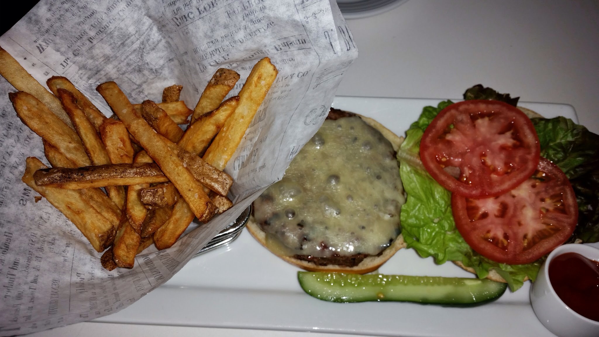 “ R” ANGUS BURGER: fried egg, onion, bacon, tomato, lettuce, on toasted brioche. The friend who had this dish told me that “A fried egg is good on top of anything.” I love my fried eggs for breakfast. So how can I resist a fried egg on top of a good burger? Just in case you have any doubt, this is a good one.