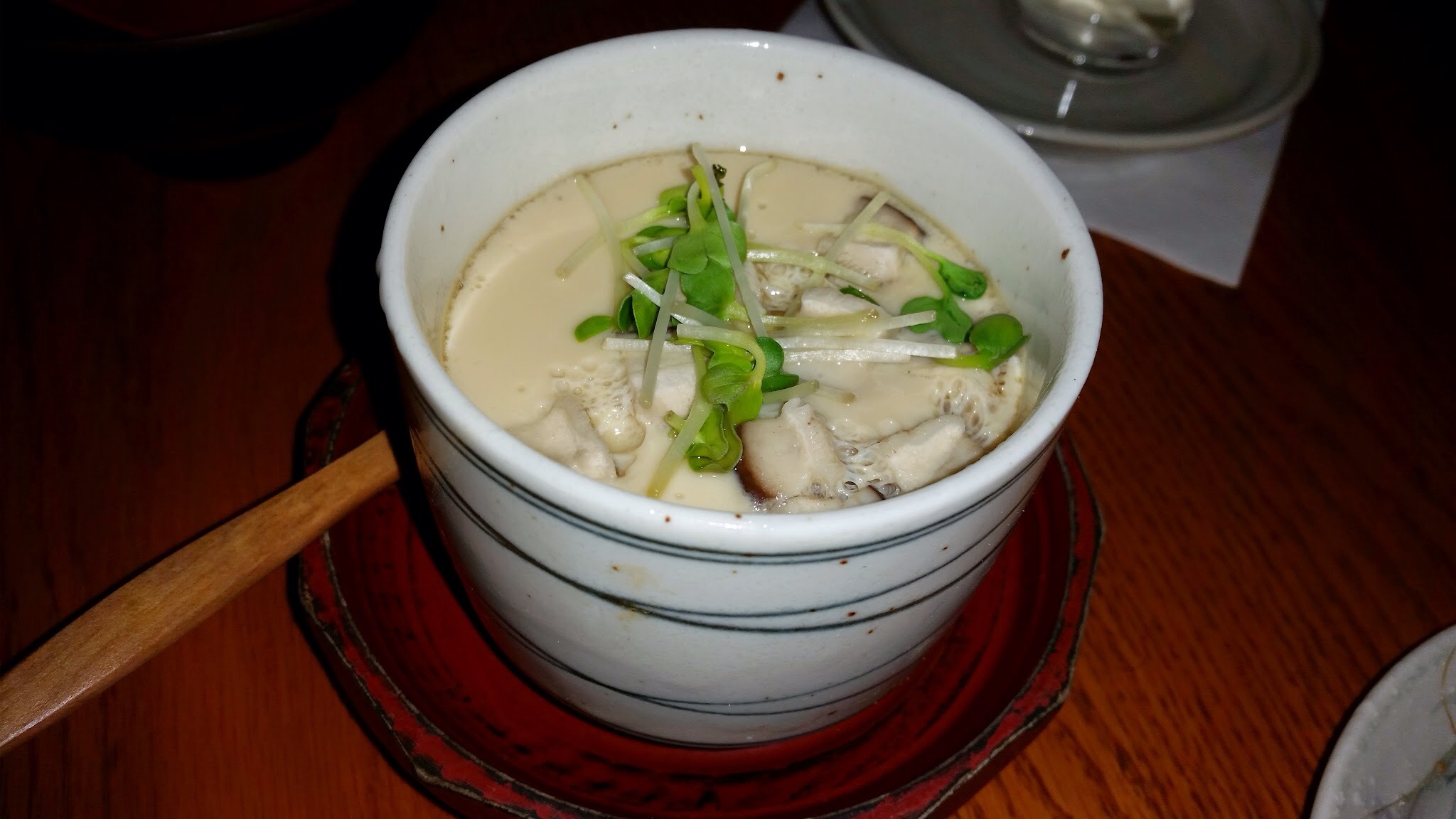 Chawan Mushi (egg custard filled with shrimp, chicken, and gingko nuts). This was excellent! How the egg custard is supposed to be. The steamed egg was soft and tasty. Loved it. But I could not find this item on their online menu.