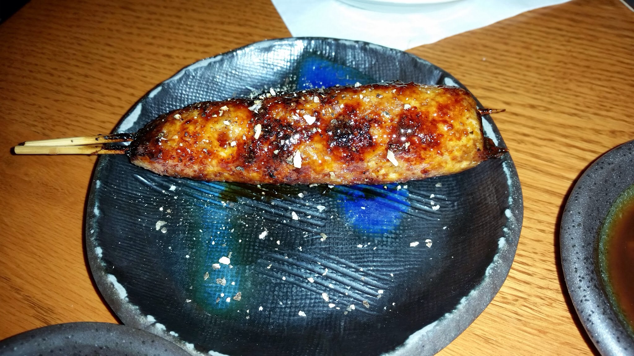 Oroshi Tsukune おろし紫蘇つくね: Chicken meatball topped w/ grated daikon radish & shiso leaf. Tasteless. Don’t know why it was such a big deal.