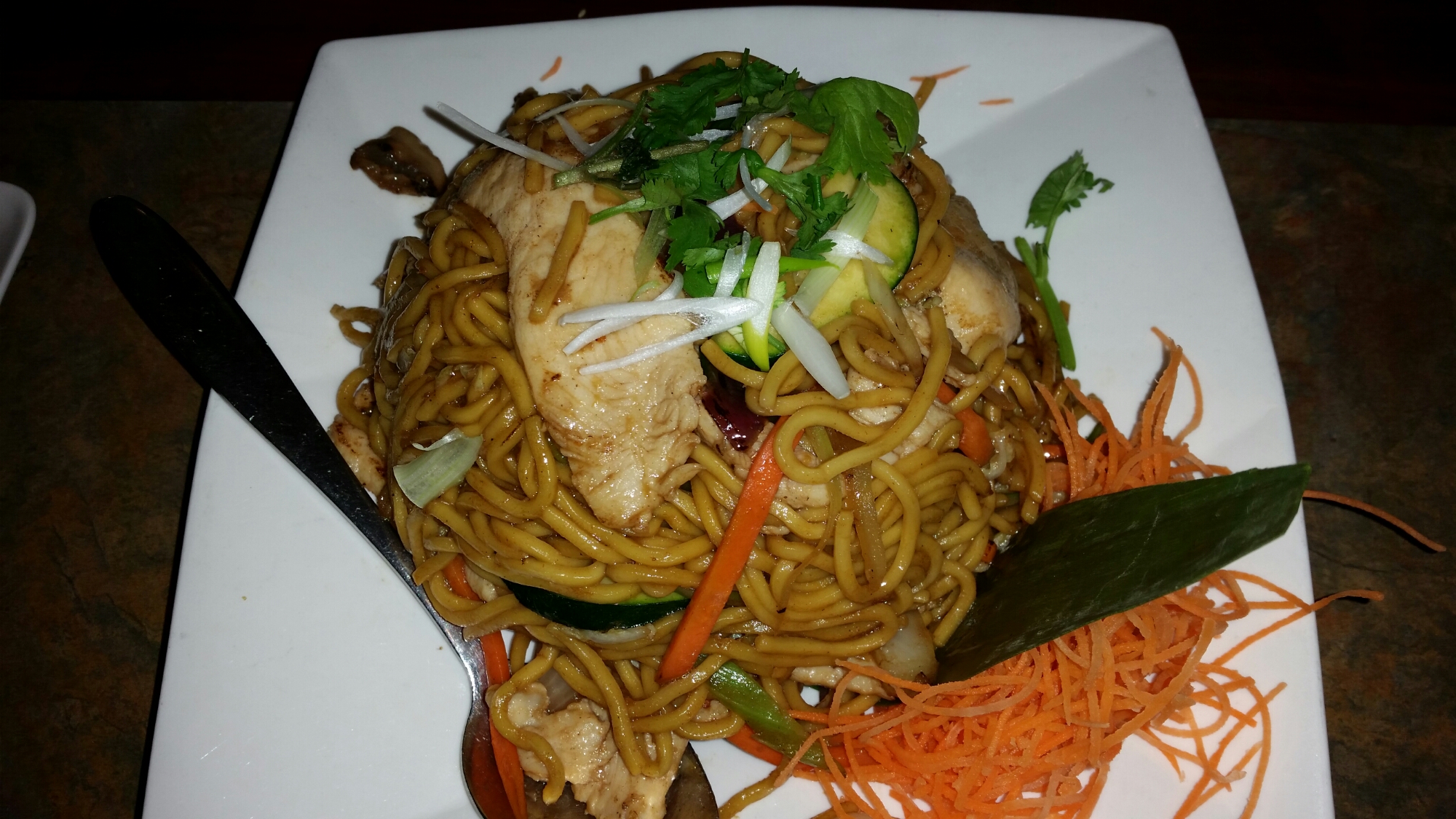 Chicken Lo Mein: Egg noodle, onion, cabbage, squash. 這個菜的唯一好處是它很大盤。大盤而已! 足以打包,下一頓再吃。但你真的想再吃這個油油的,滑滑的,少味的麵嗎?我可憐的小朋友喜歡這個菜,她是一半美式一半台式。她也喜歡台灣的肉燥麵。