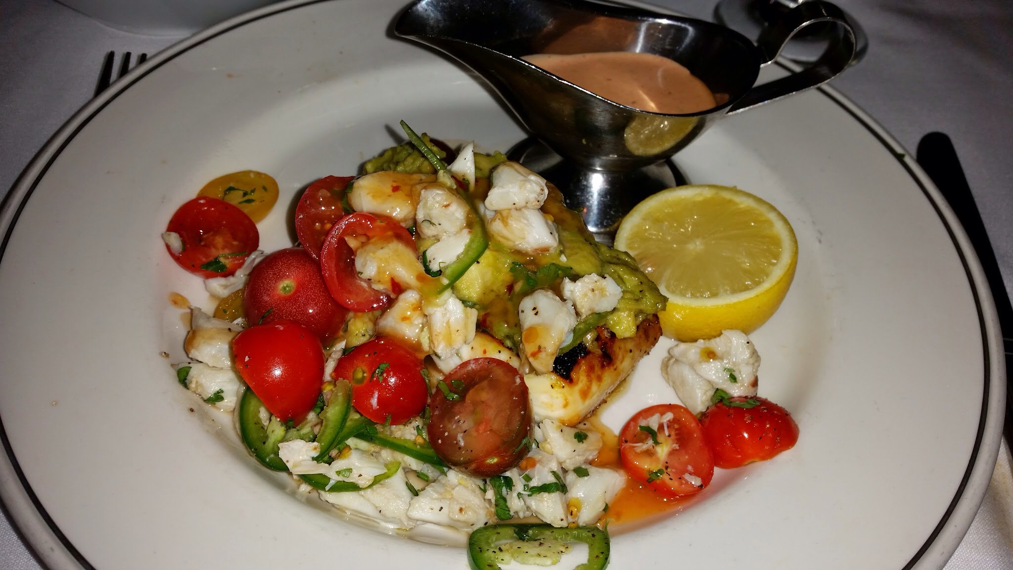Sweet and Spicy Icelandic Cod: True cod broiled and served with blue crab guacamole, tomato, jalapeños, and sweet chili sauce. Thanks to Matt (our SEO guru), I regretted my decision to order the South African lobster tail. This dish is like a beautiful and intelligent woman in an evening gown. Not only is she pleasing to the eye, she is also interestingly opinionated and a superb conversationist.