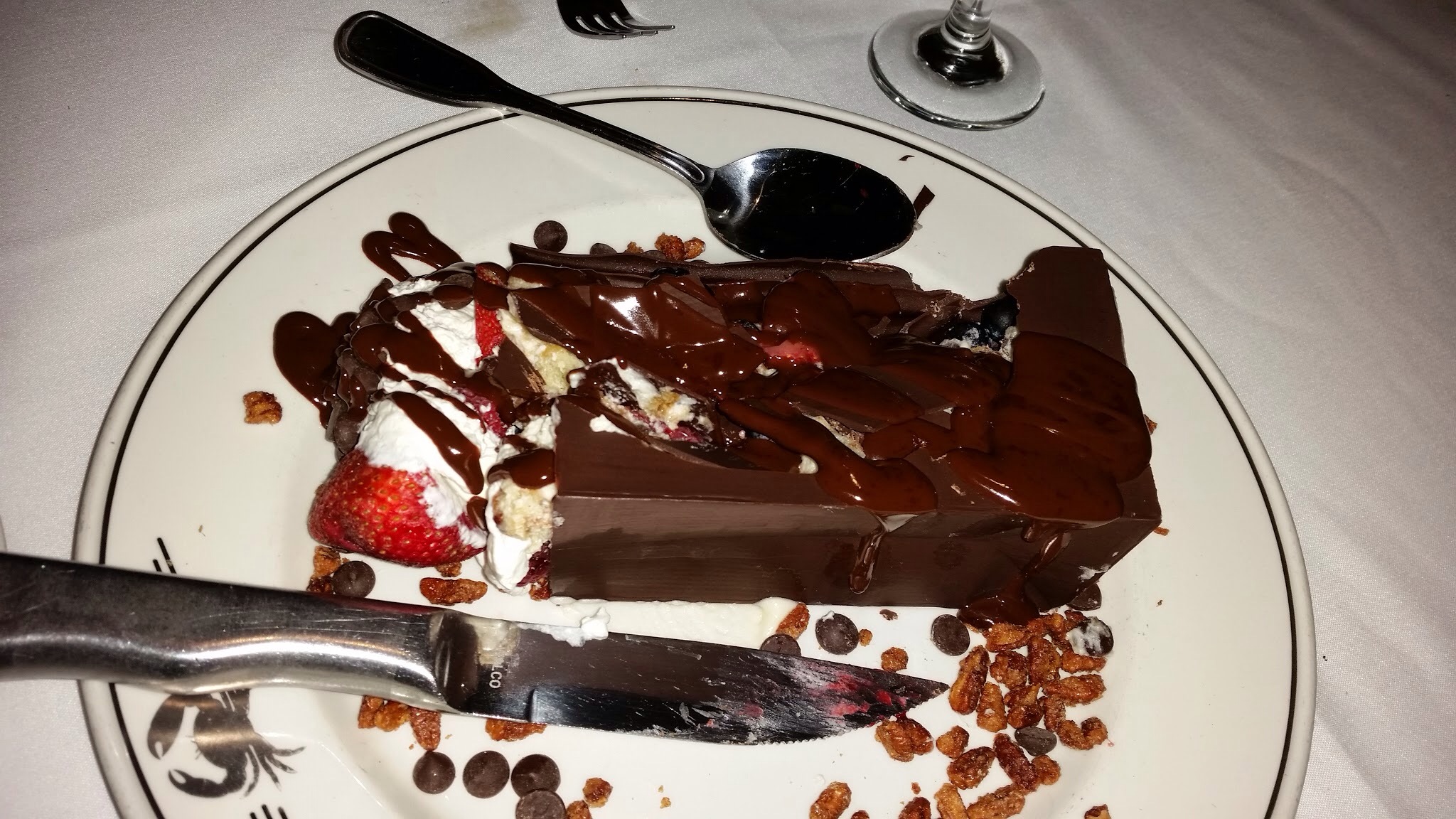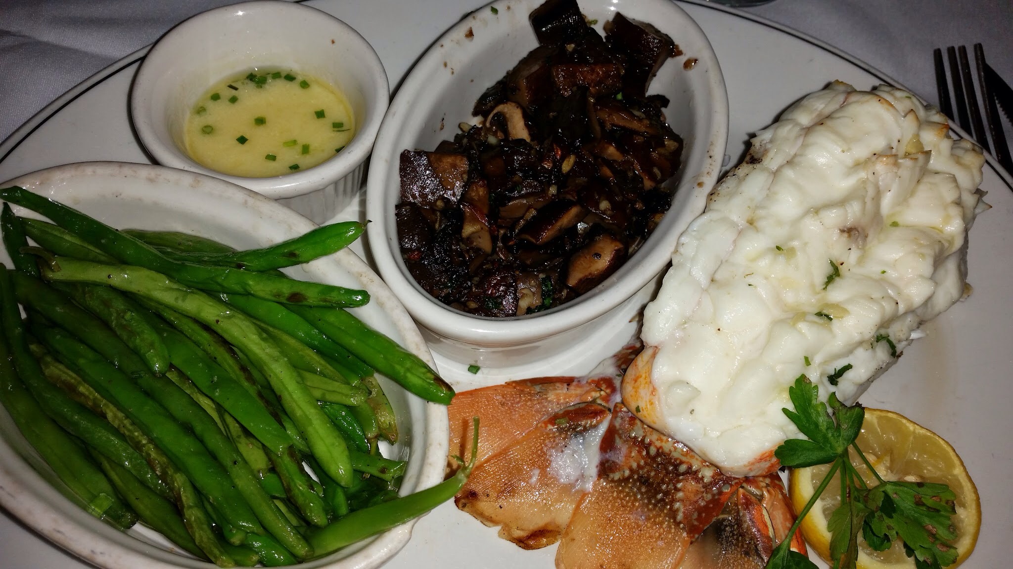 South African Lobster Tail: The Rolls-Royce of lobster with Balsamic-Glazed Portabellos and Sautéed Green Beans. This was unholy. The tail was so big and meaty. And so good. This was the first time I felt I had gotten a lot more than what I deserved. Felt rather spoiled. I am not a wasteful person and hate to not finish my plate. I left the portabello mushrooms which by themselves were a meal. I also left the green beans. In comparison, my “little” friend, Danielle, did well with her lobster tail; she shared and thoroughly enjoyed the bounty of the sea.