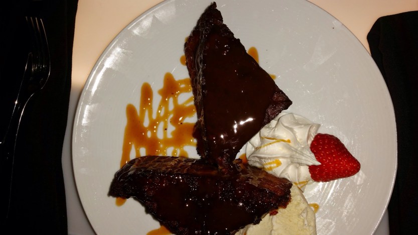 Krispy Kreme® Bread Pudding with vanilla bean ice cream. This was awesome. Didn’t think I would like a donut bread pudding dessert since I rarely eat donuts and am generally not a bread pudding fan. The chocolate they laced on top of the bread pudding was heavenly. The fried and sweet blended well. The ice cream provided a nice cooling sensation from the pudding.