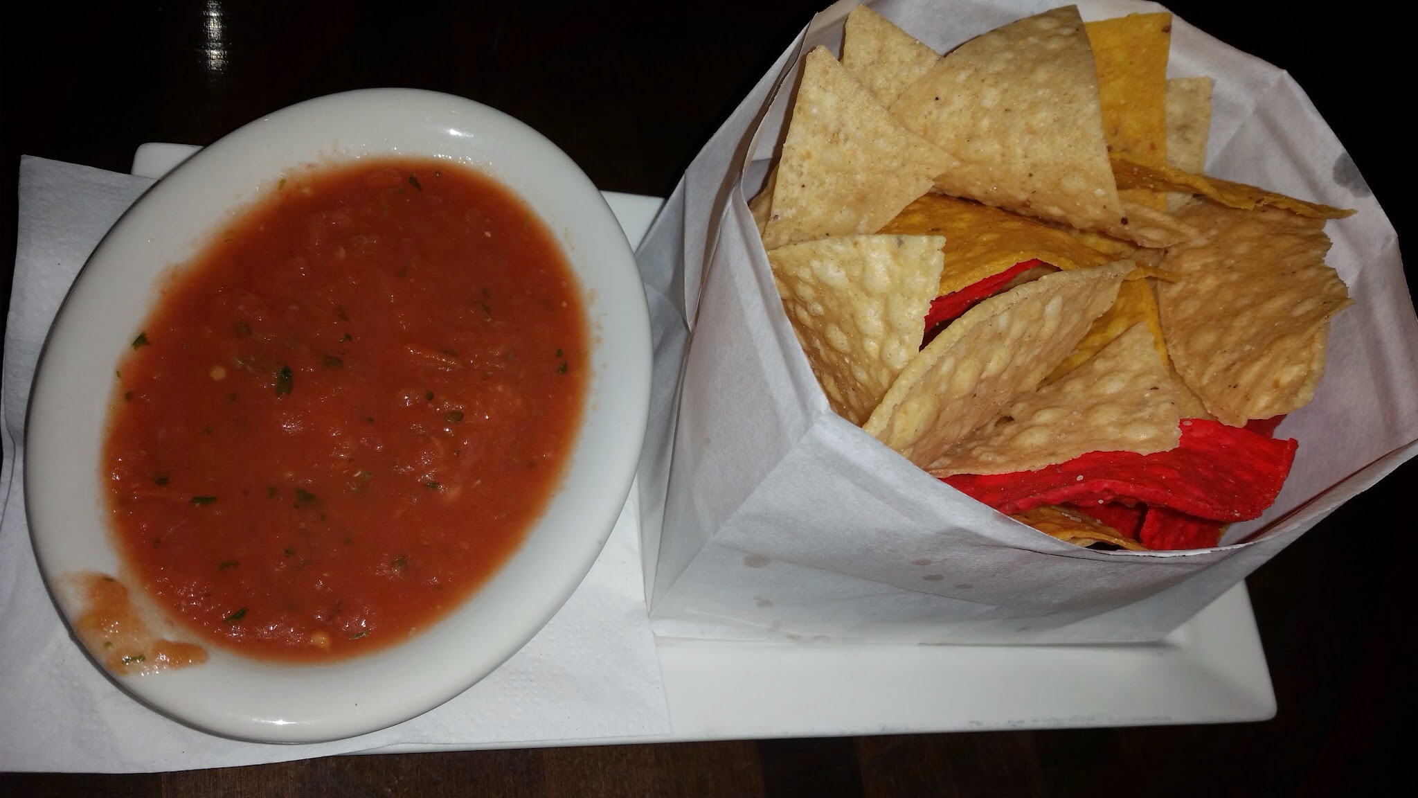 Salsa and chips which come standard to the table