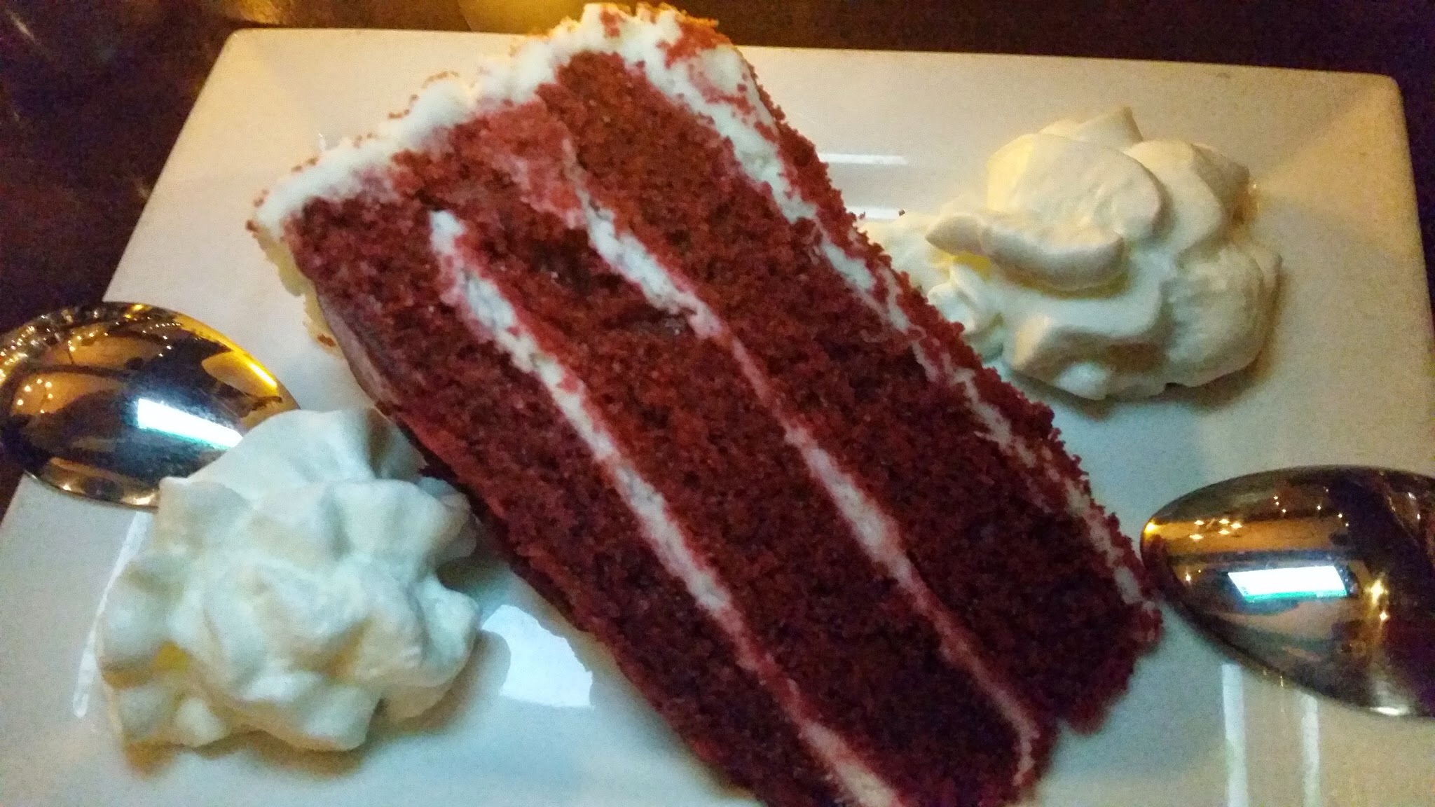 Oh, what can I say? They were out of my favorite Mexican dessert – flan! I tried for chocolate… Also didn’t have it. What’s going on guys? Don’t you know dessert is the most important part of a meal? Had to settled for this red velvet cake. Not impressed.