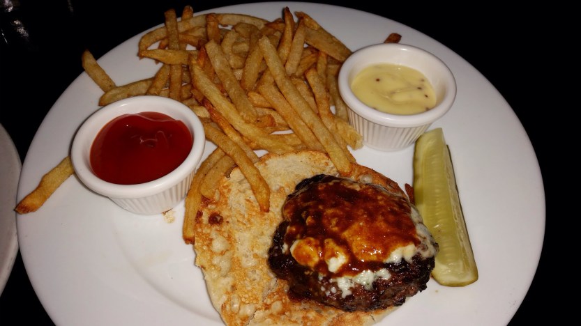 Grilled Bistro Burger with Blue Cheese and Rosemary Brown Sauce. My friend and I shared the entrées. Ruby’s was so accommodating and made two mini portions of the burger and the salad for us. Very accommodating. They get an A+ for customer service. The burger was well done, per my friend’s request; unfortunately, that made the meat dry. But it was still enjoyable enough.