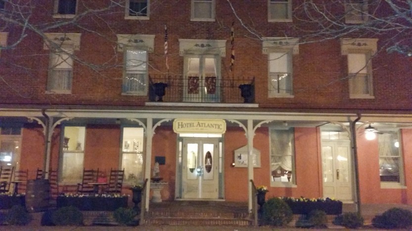 #Wanderlust continues… When I was searching for a place that is mid-point between OBX, North Carolina and home, I found Berlin, Maryland. There is only one hotel in town, the Atlantic Hotel. When I drove up, I was pleasantly surprised at how well-run and Victorian it was. The hotel was built in 1895. I am usually more of a modern type of gal but this was elegant and taught me to appreciate the old. Much better than the chain hotels.