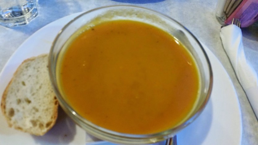 Carrot Ginger soup (VEGETARIAN). I had many variations of the carrot ginger soup in the past and I find this to be almost excellent, other than the need to add more ginger to give it a nice kick and spiciness.