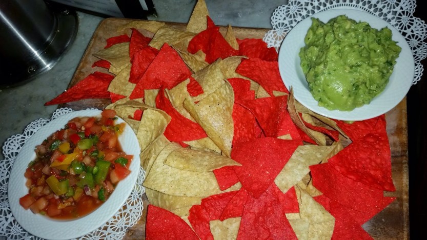 GUACAMOLE & CHIPS: with tortilla chips. Costco! Costco! Costco!