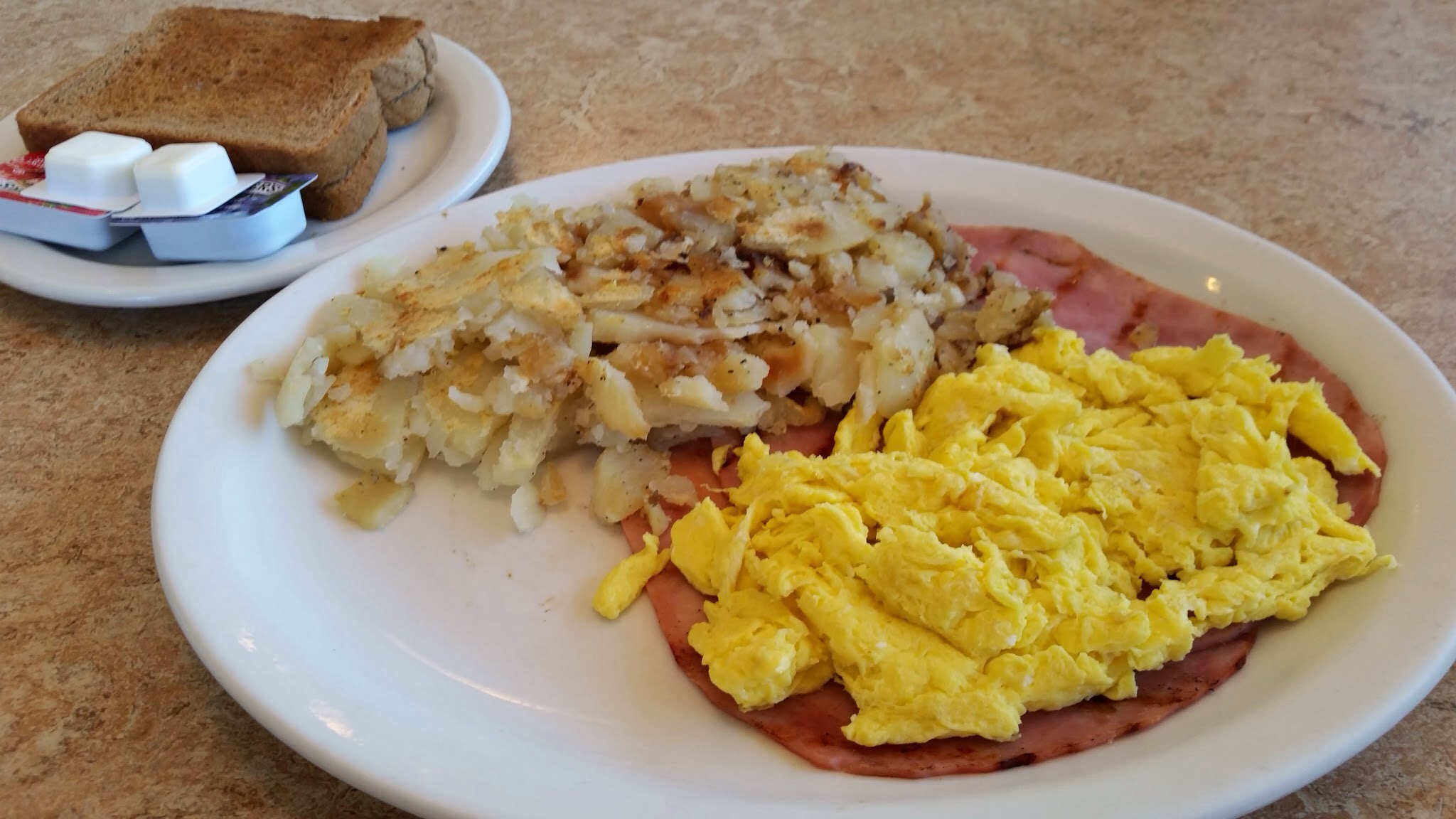 My go to breakfast or comfort food: scramble eggs, ham and home fries, plus wheat toast/butter/blackberry jam. Honestly, the food critic in me says that this was at best average – the eggs were too watery and tasteless (I salted!). The ham was good but I am sure they didn’t raise the pig, slaughtered it and then cured the meat. The home fries were just potatoes. The menu is generic diner and the parking lot looked bleak. However, this dish hit the perfect spot when my body was sore and spirits awoken. For that, this bland dish was memorable and soothing.