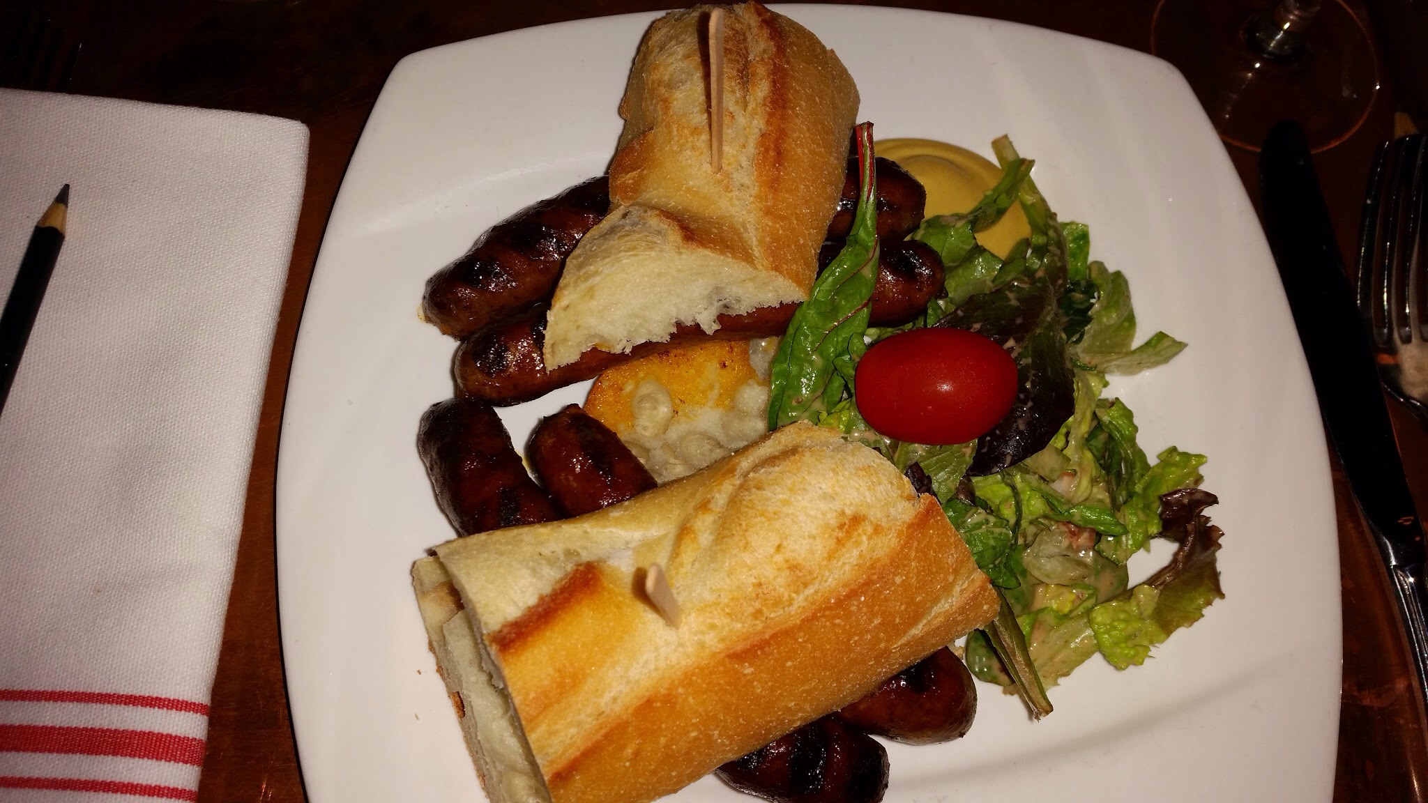 Merguez Sandwich: merguez is one of my favorites – no, it is my most favorite sausage. But this merguez is not spicy nor terribly tasty. In fact, this was not the first time I had the merguez at this restaurant. The last time I was there, my ex husband argued with the chef on how this merguez is not authentically Algerian. Of course, the chef thought he knew better. See what a good merguez sandwich really should be like, click here.