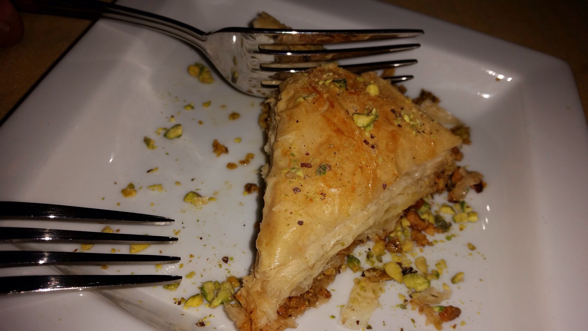 Oh – the waitress was very attentive and patient with us. She told us that they have belly dancing on Friday nights. Hmm. Who should I invite for this festivity of ogling women?