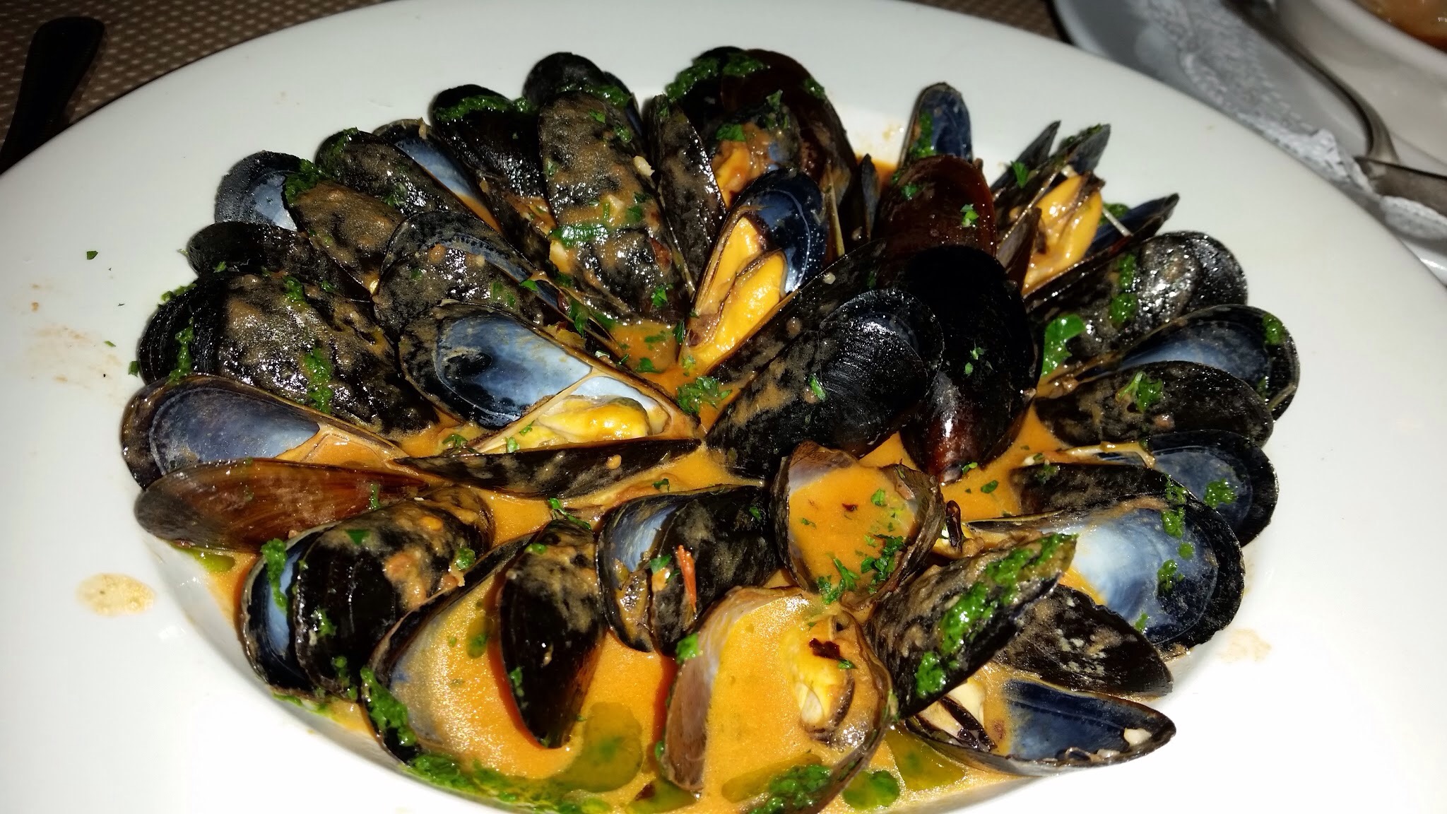 Fragrant Mussels: Scallions, shallots, sherry vinegar, spicy marinara sauce. This was interesting…I would not use the adjective of “fragrant” because both my friend and I noticed an odd smell on the mussels. It’s similar to the funky smell that I experienced with the Reef Restaurant in Forest Hills, NY.