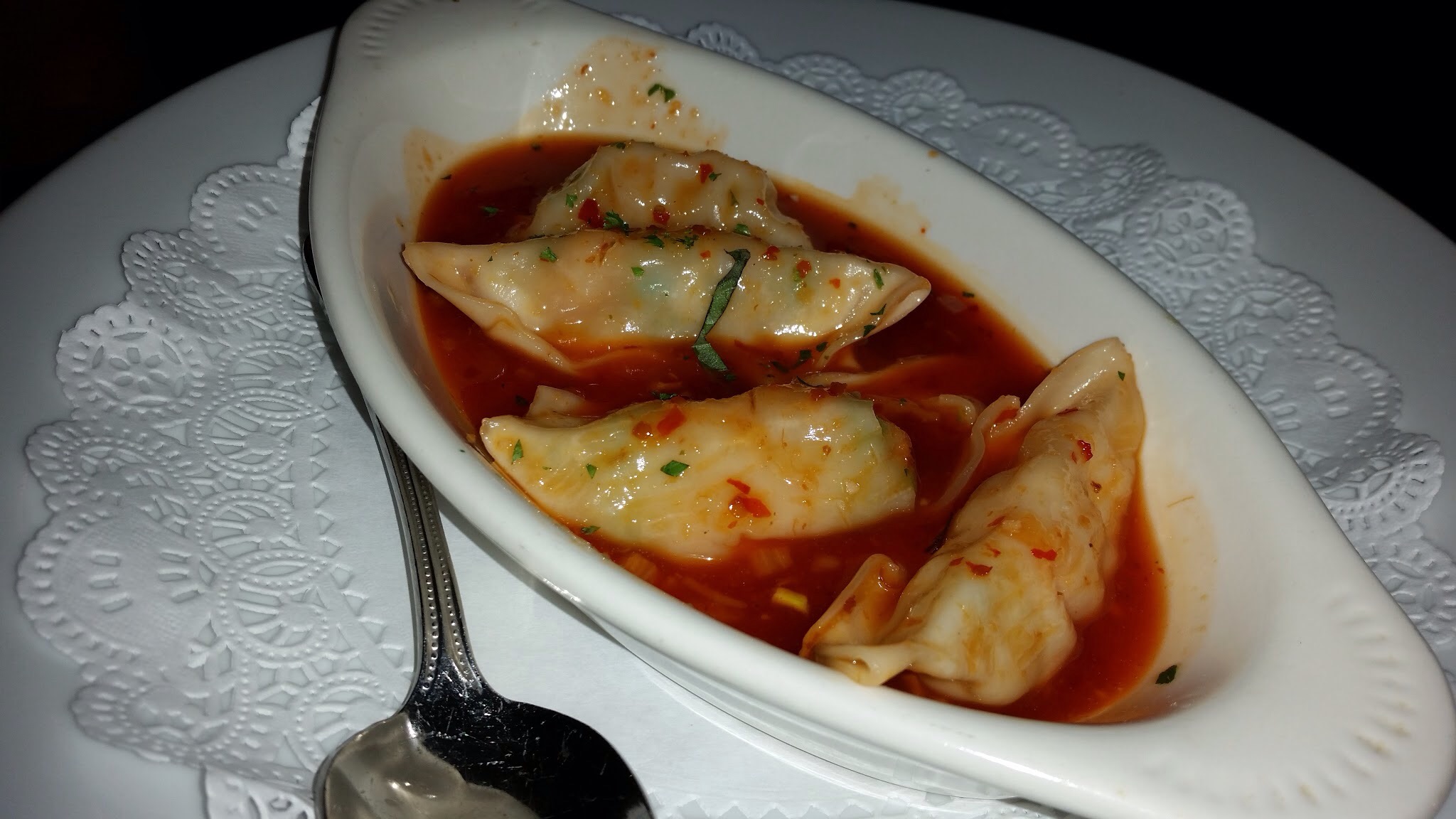 Shrimp Dumpling: Garlic, ginger, chopped scallions, Thai chili honey soy sauce. This was lovely but I did not think this was Mediterranean nor New American. This tasted exactly like something I can get from Boa’s Chinese Cuisine in White Plains. It is double the price here. Nowadays restaurants take a lot of liberty in categorizing themselves and innovating dishes (stealing from other cuisines). It really is ok to be creative but they should just called themselves New American with an Afghan focus. Let’s be honest and credit the source when one plagiarizes.
