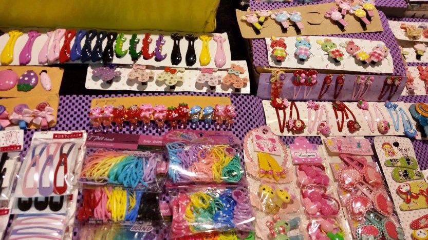 More girly than a girl can imagine. This is the universal center of girliness. I asked my daughter to pretend to be interested so I can take a photo. Then two ladies surrounded us and closed us in.