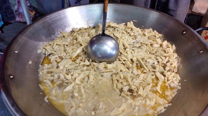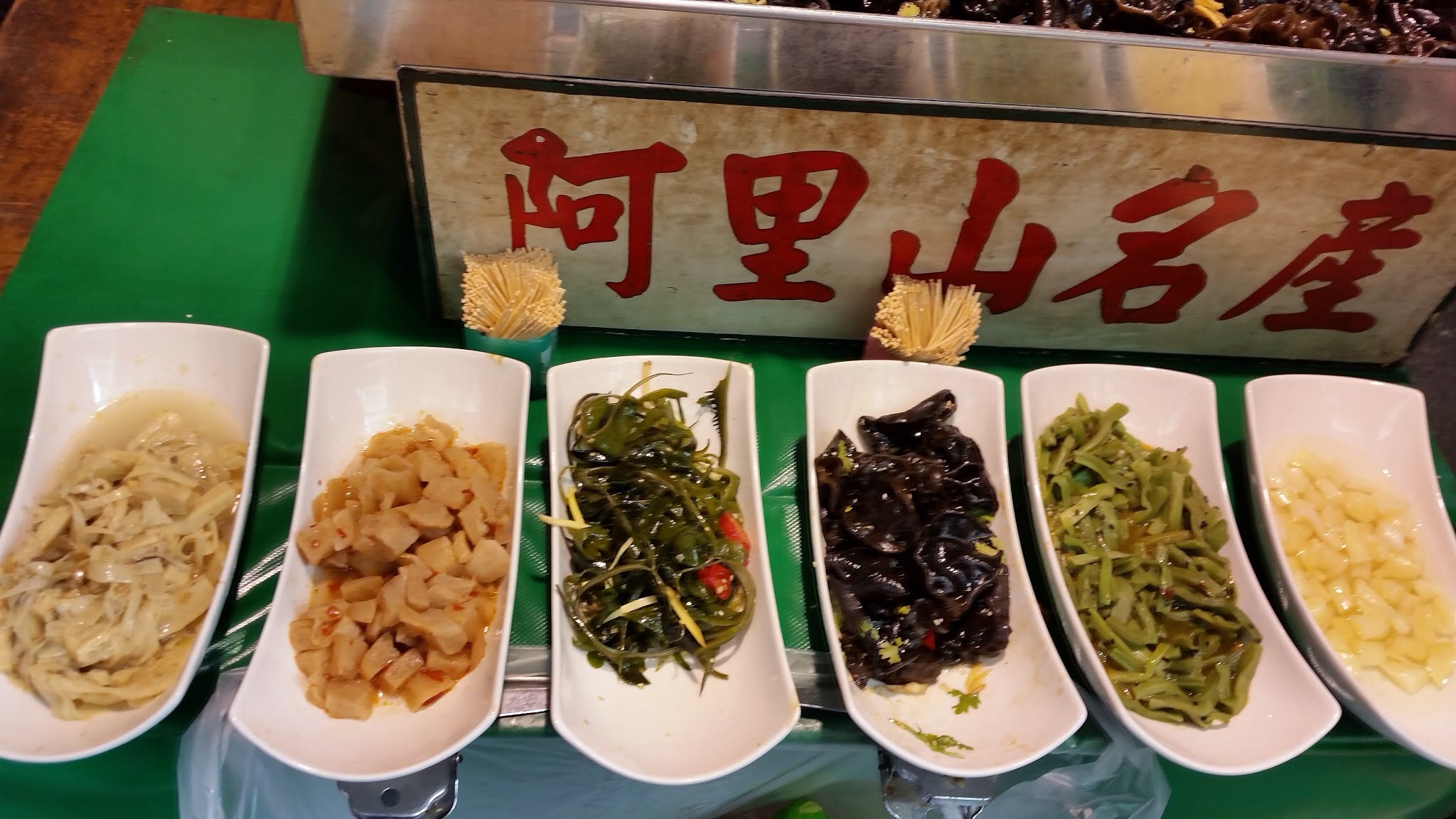 Alishan’s (阿里山)famous dishes. From left to right: bamboo shoots, bamboo shoots, seaweed, wood ear, unknown, and unknown.