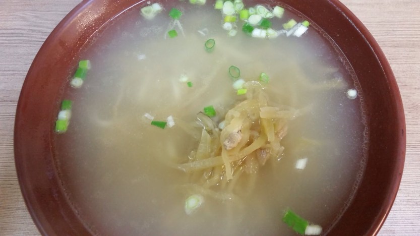 Shredded Pork and Pickled Vegetable Soup with Noodles 榨菜肉絲湯麵: This is my daughter’s favorite noodle dish in Taiwan. She gave it a thumbs up. The broth was packed with flavors from the pickled vegetables and the pork. Very well executed. $60 TWD or $2 USD.