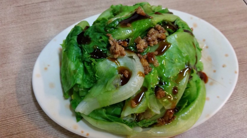 Today’s Vegetable 燙青菜: Blanched and sautéed with a little Taiwanese Bolognese sauce. This is the reasons why I never liked a cold salad nor can I ever be a vegetarian. Vegetables are so much better when sautéed with a little meat sauce.