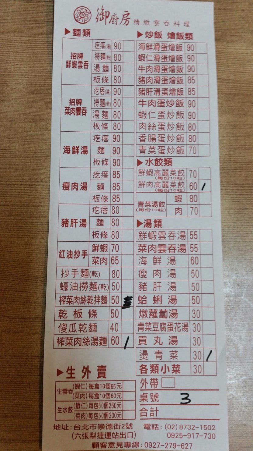 This is a small place, 御廚房, right off the Liuzhangli MRT station on the Wenshan train line. With no research, we walked in for dinner. I was exhausted from a long day and did not even realize that they are known for their wontons until now. It’s a local place that has seating for maybe 15 people.