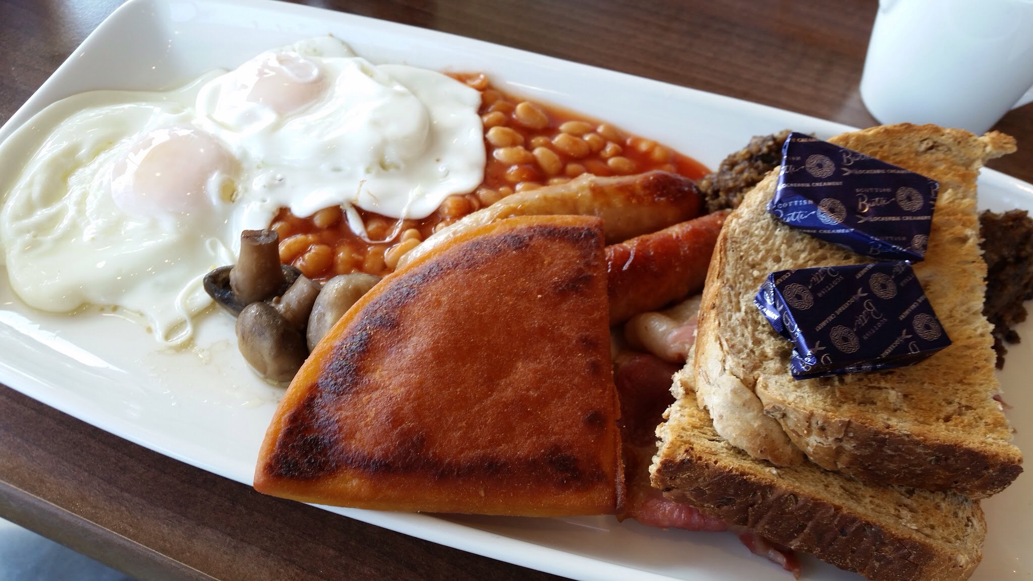 The brown cake at upper right corner is the Haggis. This is breakfast Haggis from the Elliot Restaurant & Bar at the Apex Waterloo Hotel (1) in the quieter part of Edinburgh. £13.95 for Continental Breakfast with Haggis.