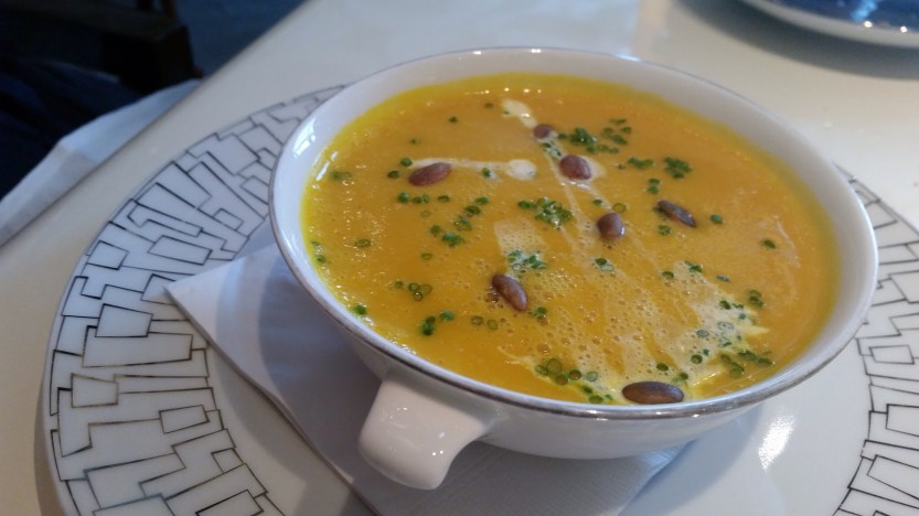 LA SOUPE DU JOUR | SEASONAL DAILY SOUP | 主廚例湯. This was the pumpkin and carrot soup. My friend enjoyed it.