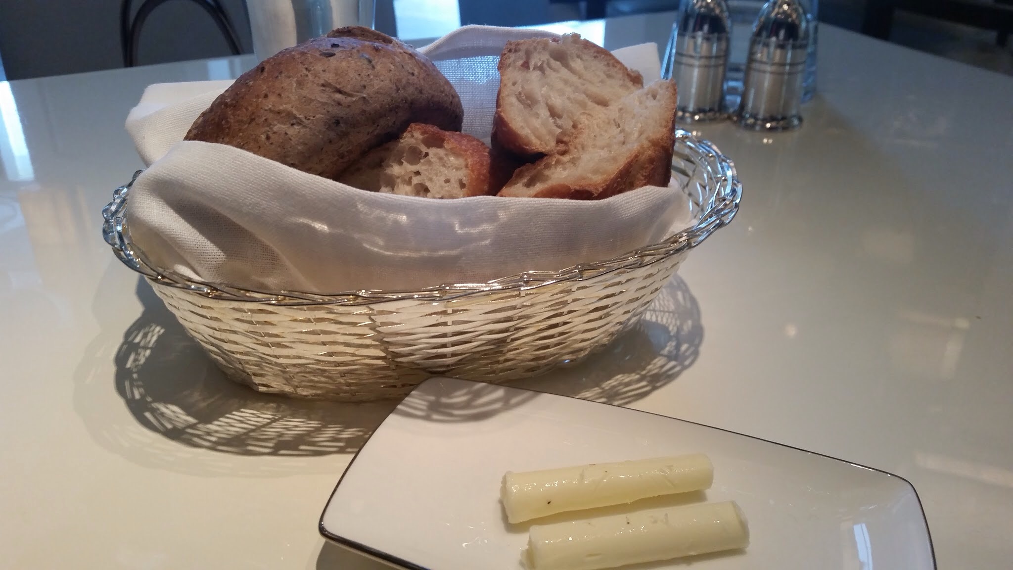 I went from the French bistro, Le Pain Grille, to Café Un Deux Trois in the luxurious 5-star Mandarin Oriental Hotel in Taipei. Let’s just say the price tripled if not quadrupled in the Mandarin Oriental. I did not necessarily get better tasting food; I got better presented food, a beautiful surrounding and a more elite group of diners. Maybe even complimentary parking. It’s definitely NYC priced but with more elbow space. I am sure glad that I put on a dress vs. showing up in my running shorts and a tank top, my usual attire in the hot summer days.