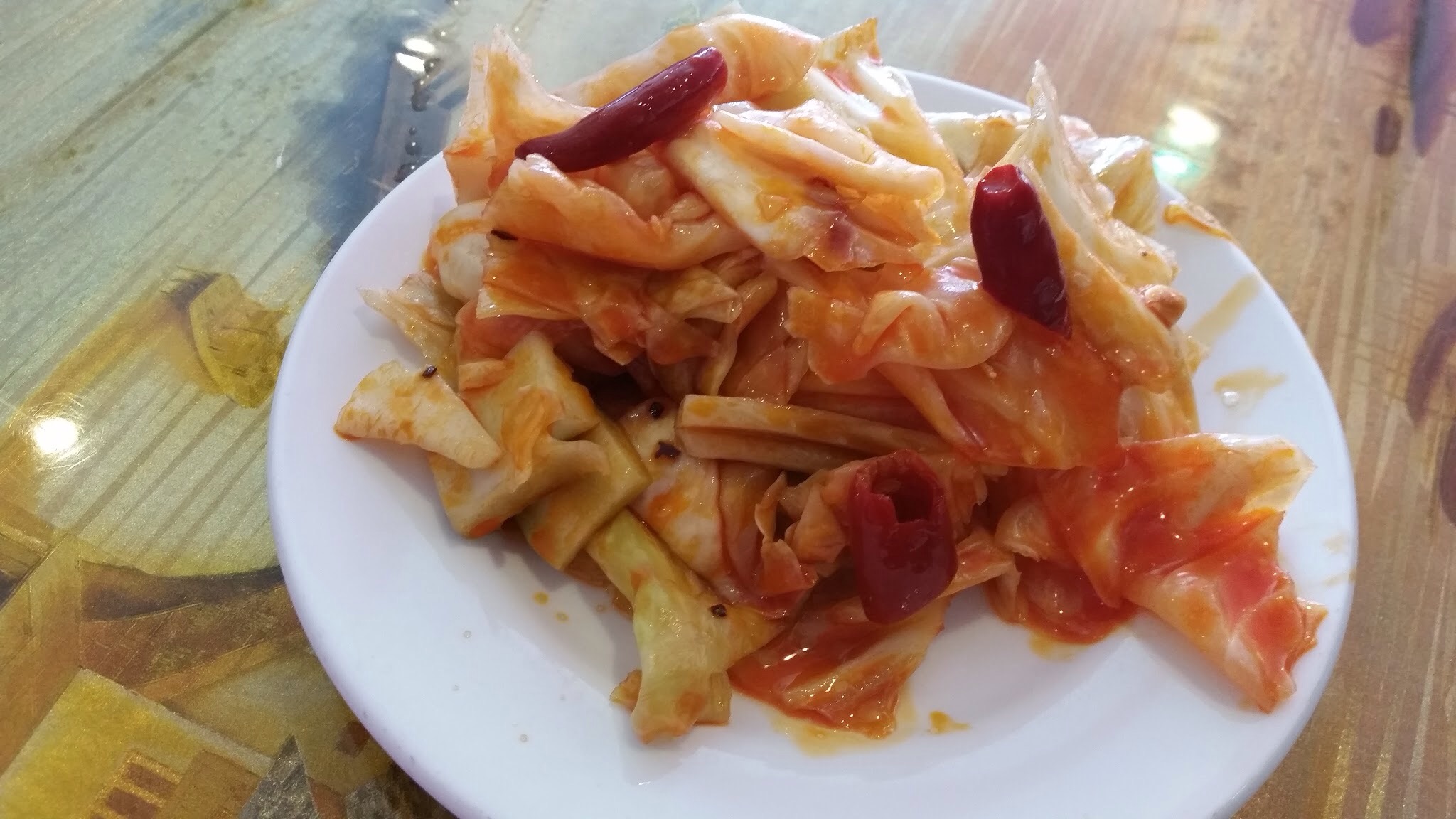 Sautéed Cabbage in Hot and Sour Sauce四川泡菜。 This is definitely not sautéed; it is pickled. This is an inaccurate translation. But the dish was darn good. A perfect representation of the Sichuan cuisine: bold, flavorful, and spicy!