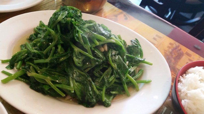Sautéed Potatoes Leaves. This was excellent. Fresh veggies quickly sautéed in the wok. Can’t really go wrong unless you overcook it.