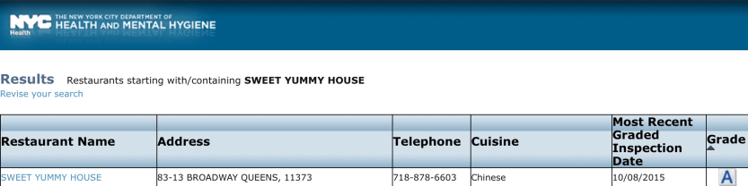 Here is the screen shot of the Grade A from NYC Department of Health website.