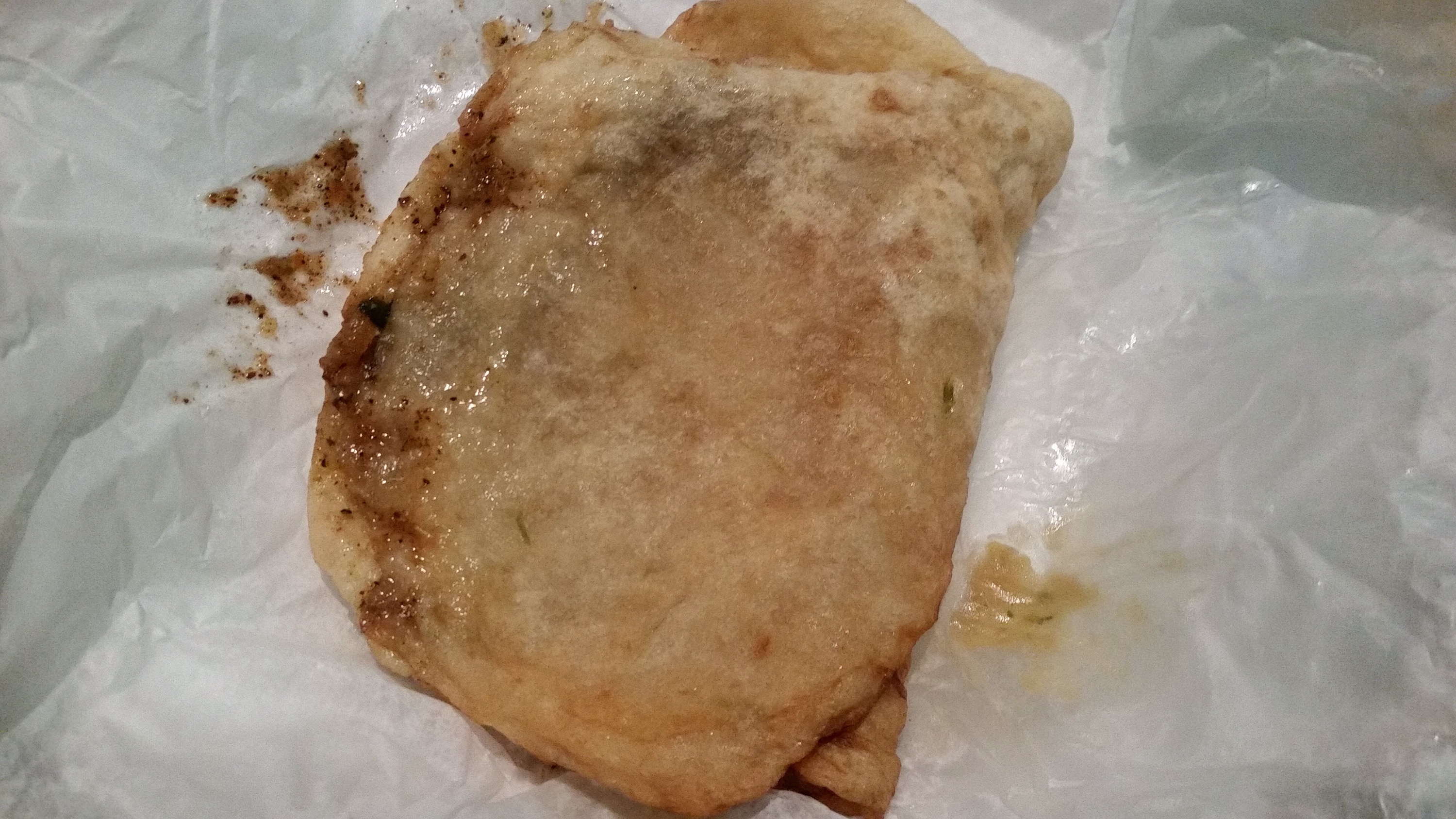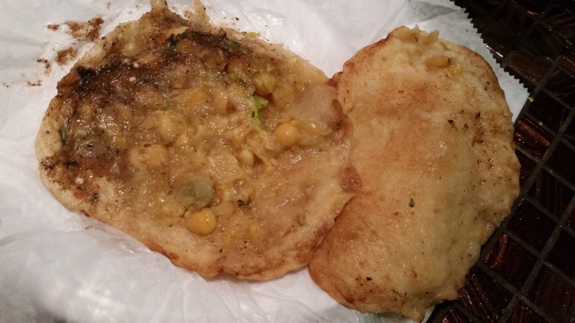 - Doubles: a sandwich made with two bara (flat fried bread) filled with channa (curried chick peas), eaten with spicy and sweet sauce. This is a food that was pioneered by a Trinidadian entrepreneur. We started with Doubles, almost like an appetizer.
