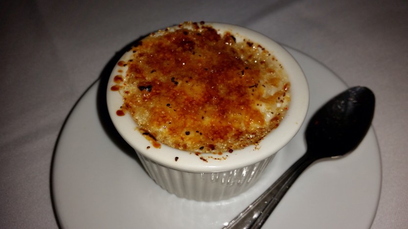 Mini Risotto Creme Brûlée: custard made with risotto with a cracked sugar top. Risotto knows what they are doing with their parings. This mini risotto creme brûlée is just the right size despite the heaviness from the risotto.