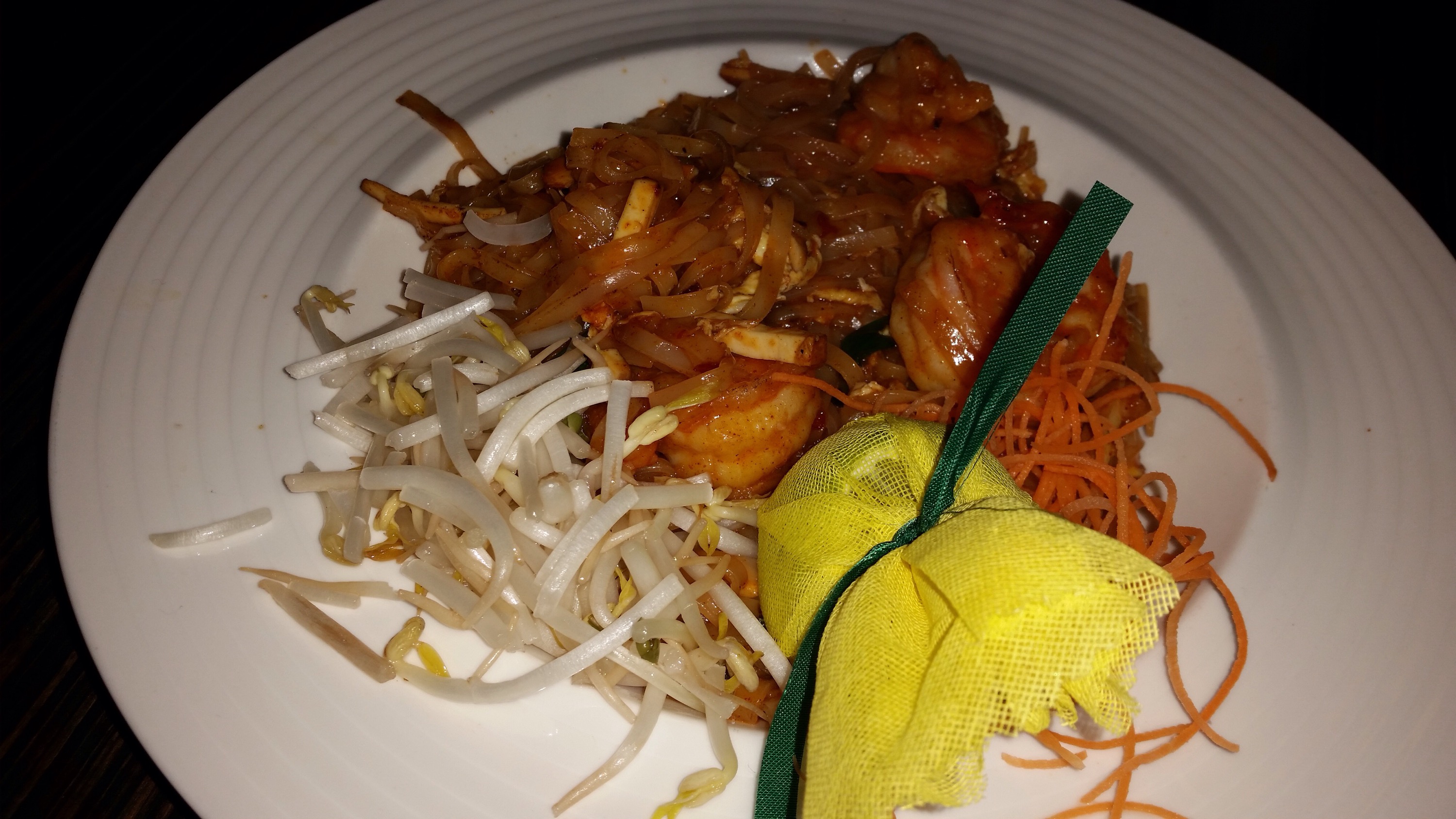 Pad Thai Noodles: spicy Thai flat noodle with jumbo shrimp. By this point, I was full. Ate the jumbo shrimps but packed up the rest. Never got a chance to finish it because I forgot it in the fridge.