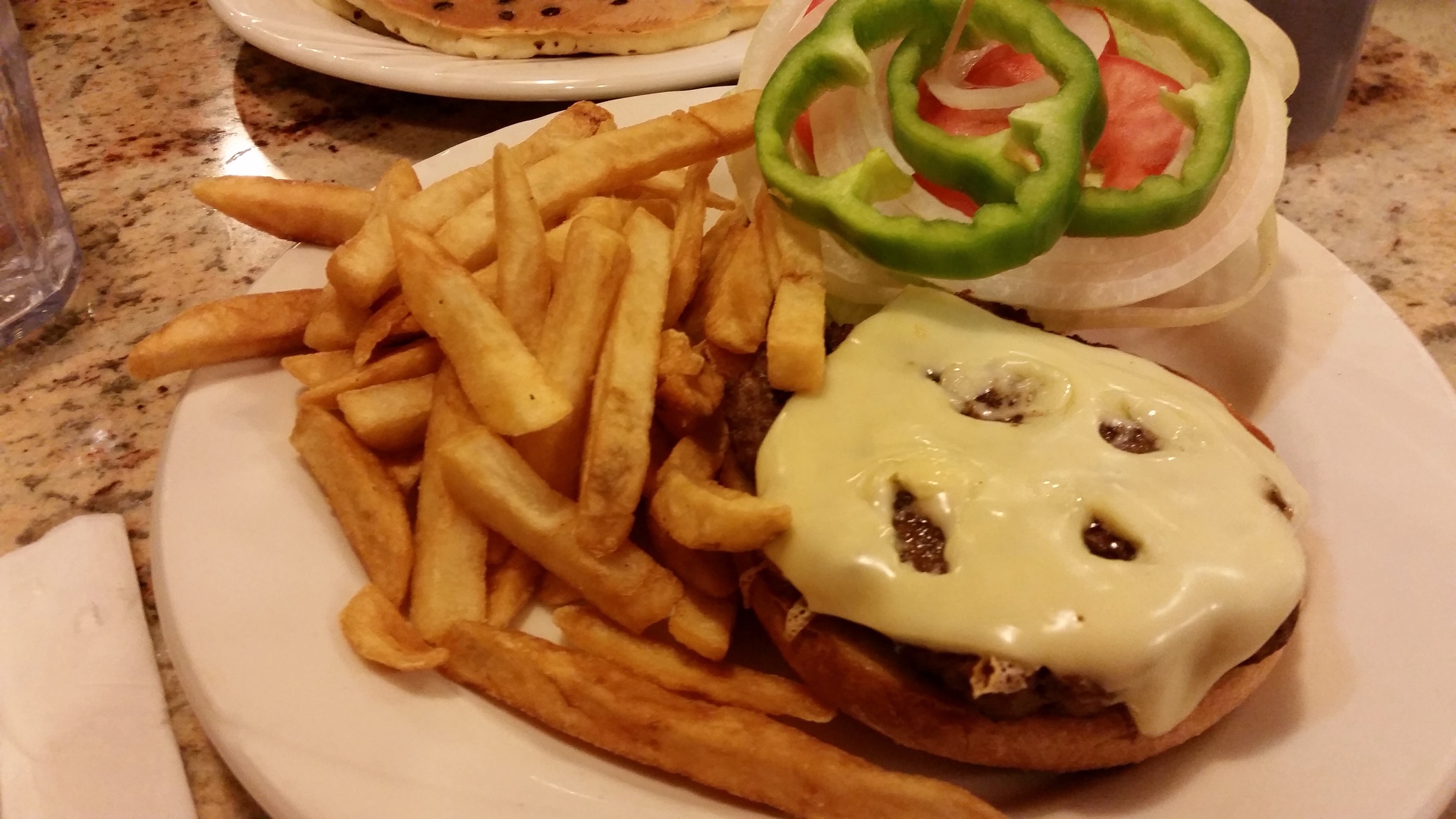 Wrong again. This was my Sunrise Special of a generic cheese burger with Swiss and fries. The patty was limp.